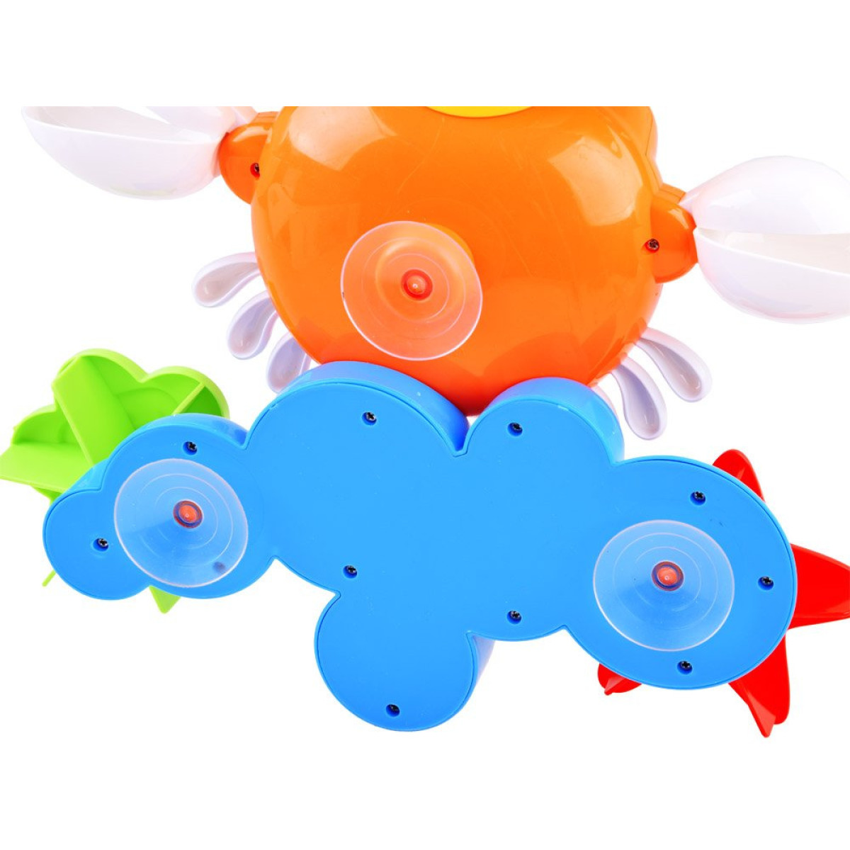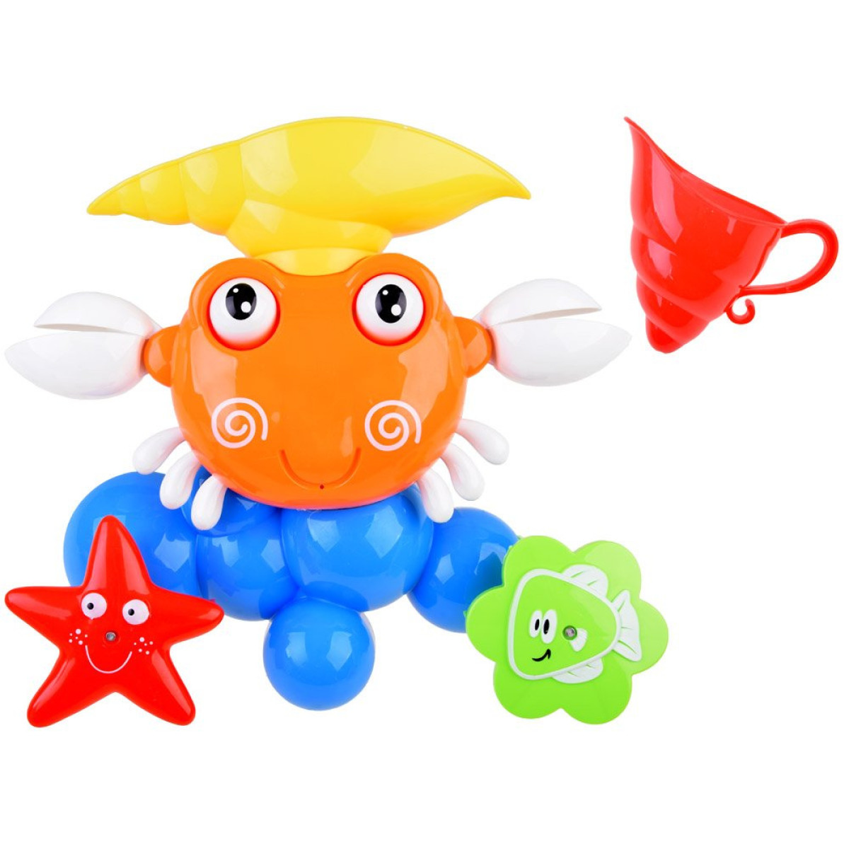 Krāsainā krabja rotaļlieta peldēšanai ir lieliska izvēle, lai nodrošinātu jautru laiku ūdenī. Krabis ar pievilcīgām krāsām ļauj izdomāt dažādas spēles. Rotaļlieta ir pilnībā izgatavota no plastmasas un piedāvā daudz pārsteigumu. Mutiņā ir caurums ūdens liešanai, kustīgas spīles, acis un ritenīši. Rotaļlietu var viegli piestiprināt pie gludas virsmas, izmantojot komplektā iekļautās piesūcekņus.