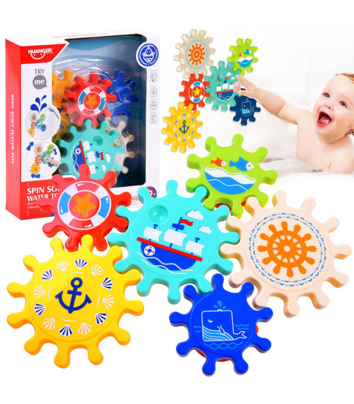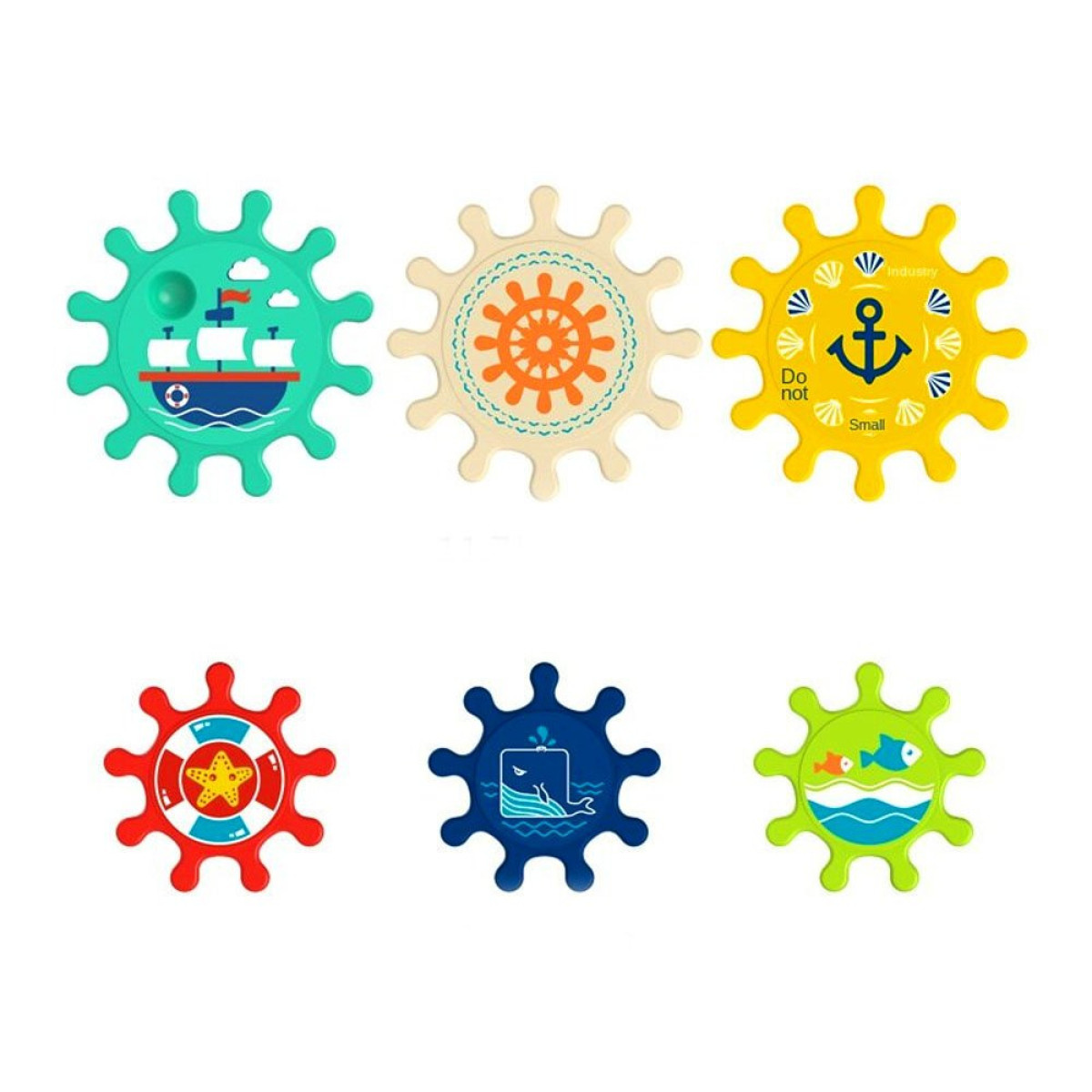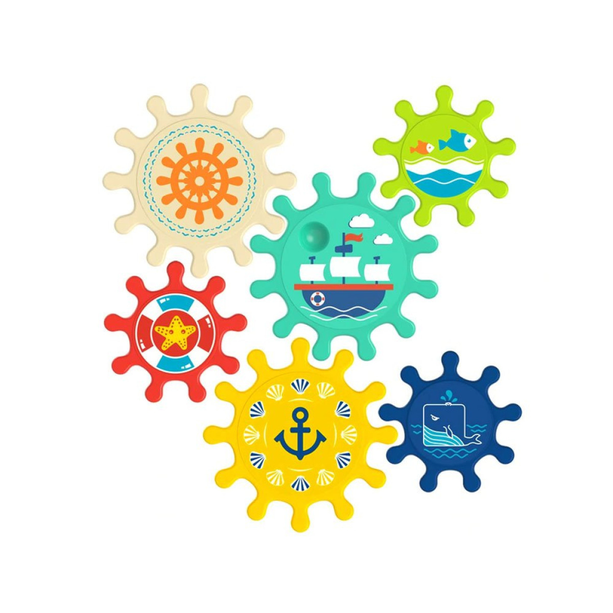 Krāsainie zobrati ir paredzēti piestiprināšanai uz gludas virsmas, lai bērni varētu ar prieku tos iegriezt kustībā, izmantojot ūdeni vai rokās. Komplektā ir seši krāsaini zobrati ar jūrniecisku grafiku un krāsām, kas lieliski iederēsies jebkurā vannas istabā, kur bērns peldas.