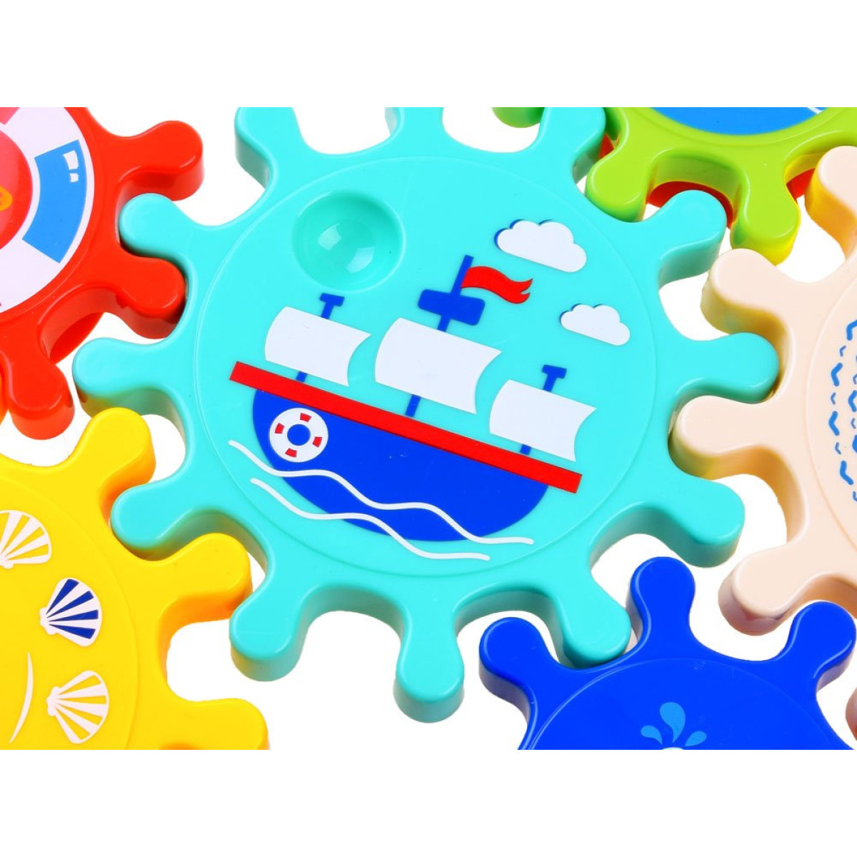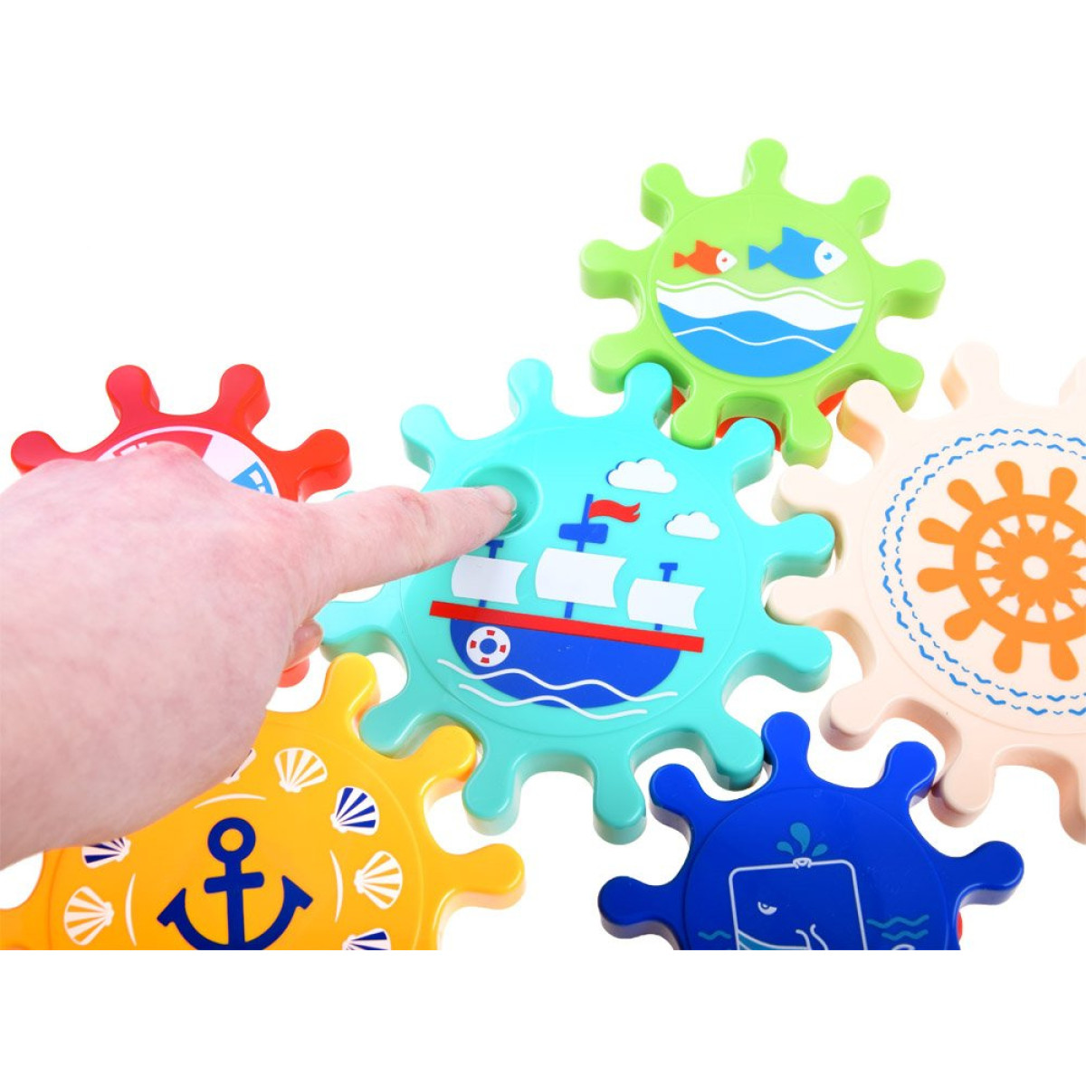 Katrs zobrats ir aprīkots ar piesūcekni, lai to viegli piestiprinātu pie gludas virsmas. Spēlējoties bērns varēs novērot, kā zobrati savstarpēji mijiedarbojas, apgūstot cēloņu un seku sakarības, un lieliski pavadot laiku. Krāsainā grafika un dizains mudinās ikvienu uz spēli. Jokomisiada veikals piedāvā plašu izglītojošo rotaļlietu klāstu, kā arī daudz peldvietu rotaļlietu. Komplekts ir iepakots krāsainā iepakojumā, kas lieliski derēs kā dāvana.