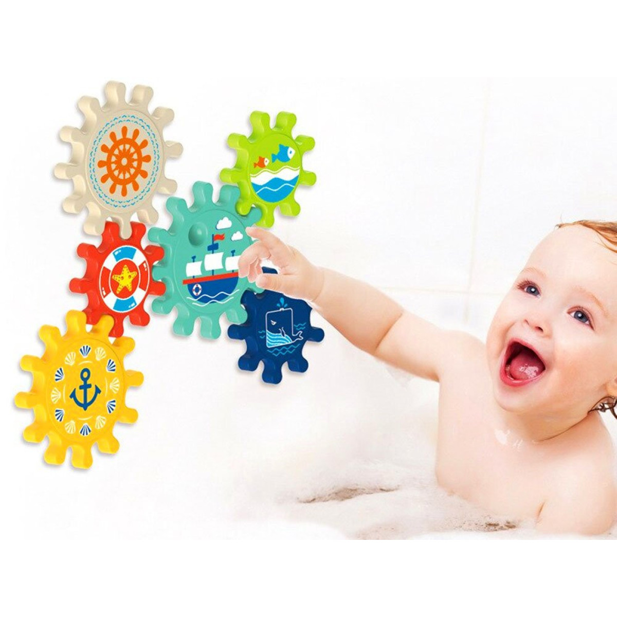 Rotaļlietu jāpiestiprina pie sienas, dušas kabīnē vai vannas malas, lai zobrati varētu savstarpēji saderēt. Tādējādi bērns, griežot vienu zobratu, iegriež visu konstrukciju.