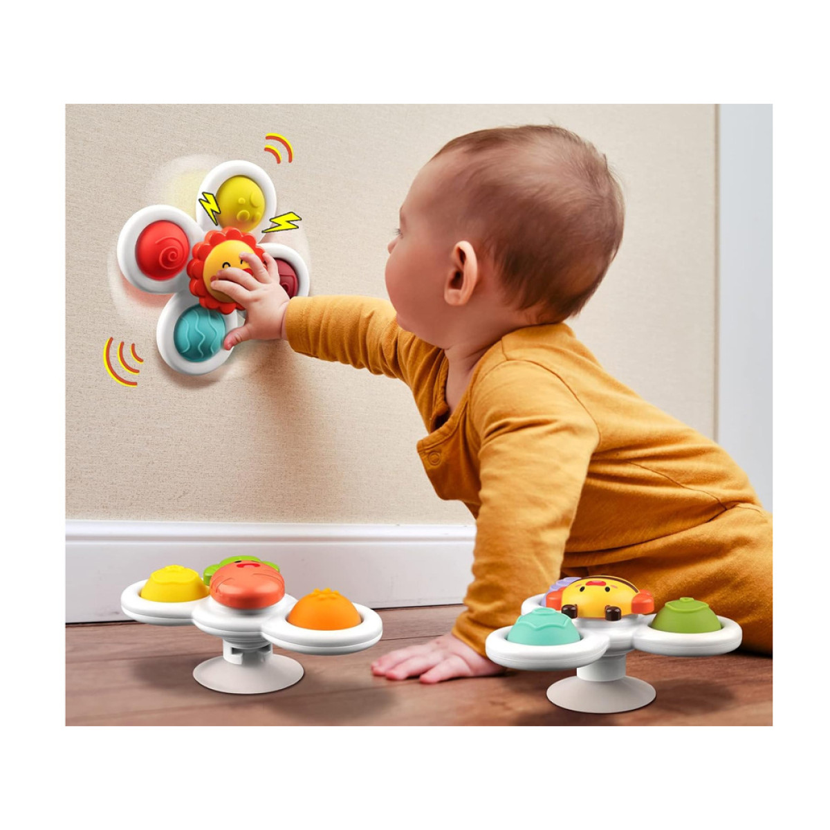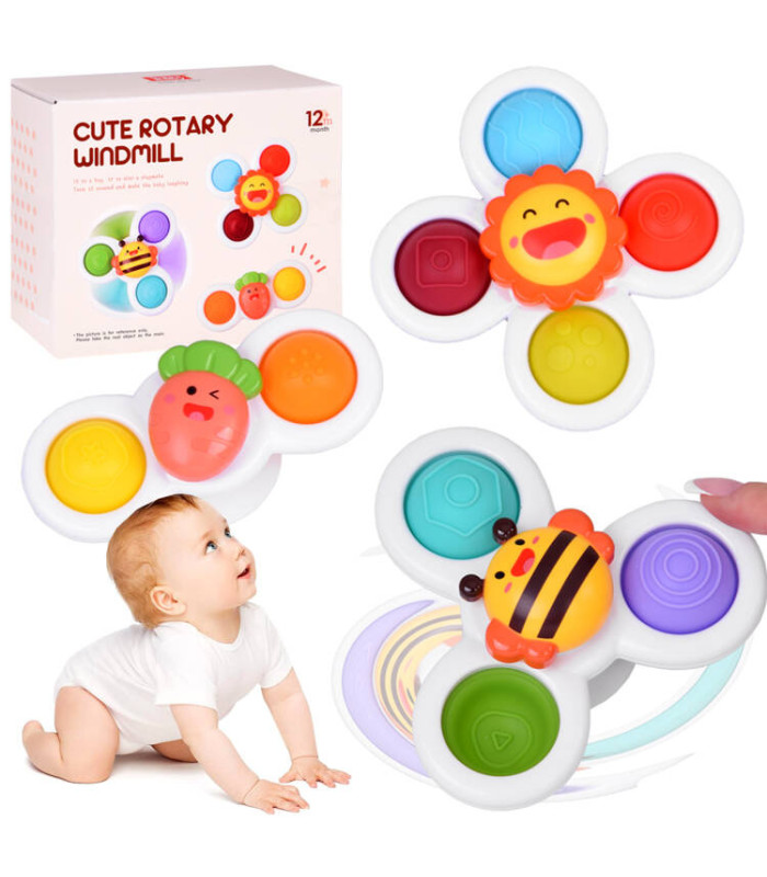Viena no labākajām idejām rotaļām ir vannošanās. Padariet ikdienas mazgāšanos priecīgāku ar šiem krāsainajiem sensorajiem spinneriem. Trīs rotaļlietu komplekts pārvērš vannas laiku aizraujošā piedzīvojumā, bet piesūceknis ļauj katru spinneri ērti piestiprināt pie vannas vai flīzēm.