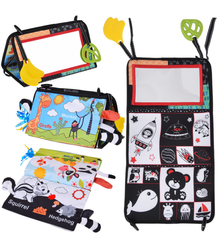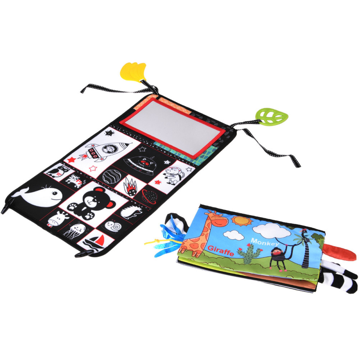 Sensoryks rotaļlieta ar spoguli un kontrastējošu grāmatiņu