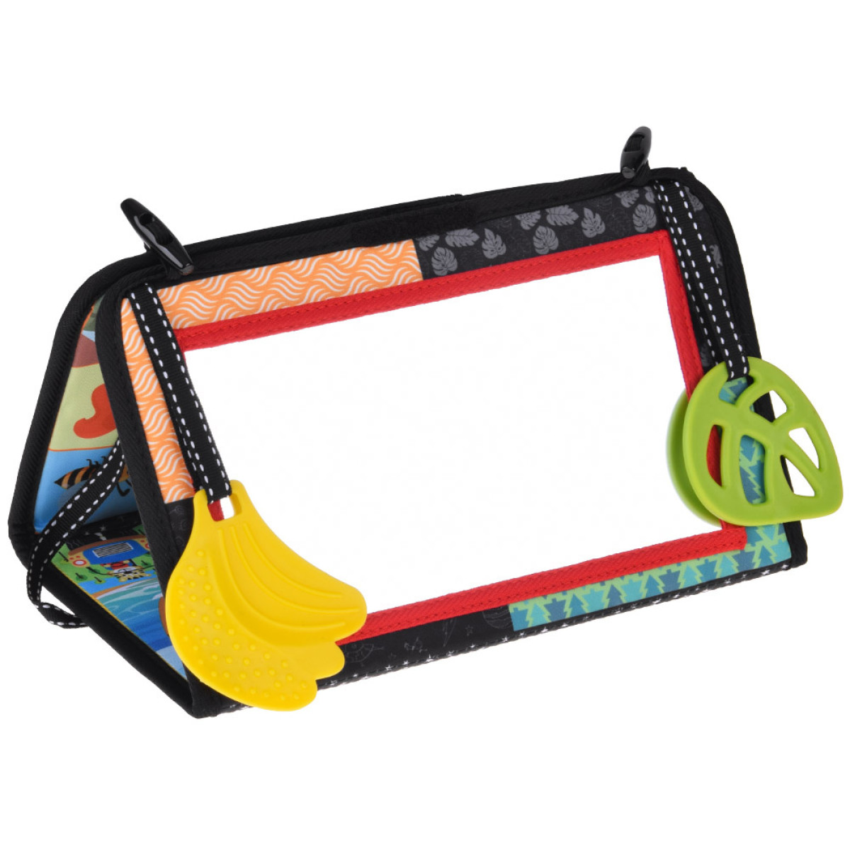 Pirmais komplekta elements ir divpusējs, salokāms spogulis harmonikas formā. Vienā pusē ir drošs spogulis un divi kvadrātveida lodziņi ar kontrastējošiem dzīvnieku attēliem. Otrā pusē ir dažādas ainas – pirmajā kartē ir džungļu dzīvnieki, bet nākamajās divās kartēs ir krāsaini attēli ar dzīvniekiem dažādās profesionālajās lomās. Spoguli var viegli novietot stāvus un sasiet, lai mazulis varētu redzēt savu atspulgu vai skatīties attēlus. Papildus, spogulim ir divi izvirzīti gumijas elementi, kas kalpo kā graužamriņķi – viens dzeltena banāna formā un otrs zaļa lapa formā. Katram no tiem ir atšķirīga faktūra, kas papildus stimulē bērna tausti un sniedz atvieglojumu zobu šķilšanās laikā. Šādas aktivitātes palīdz arī stiprināt vēdera un kakla muskuļus, kas ir viens no pirmajiem soļiem rāpošanas apguvē.