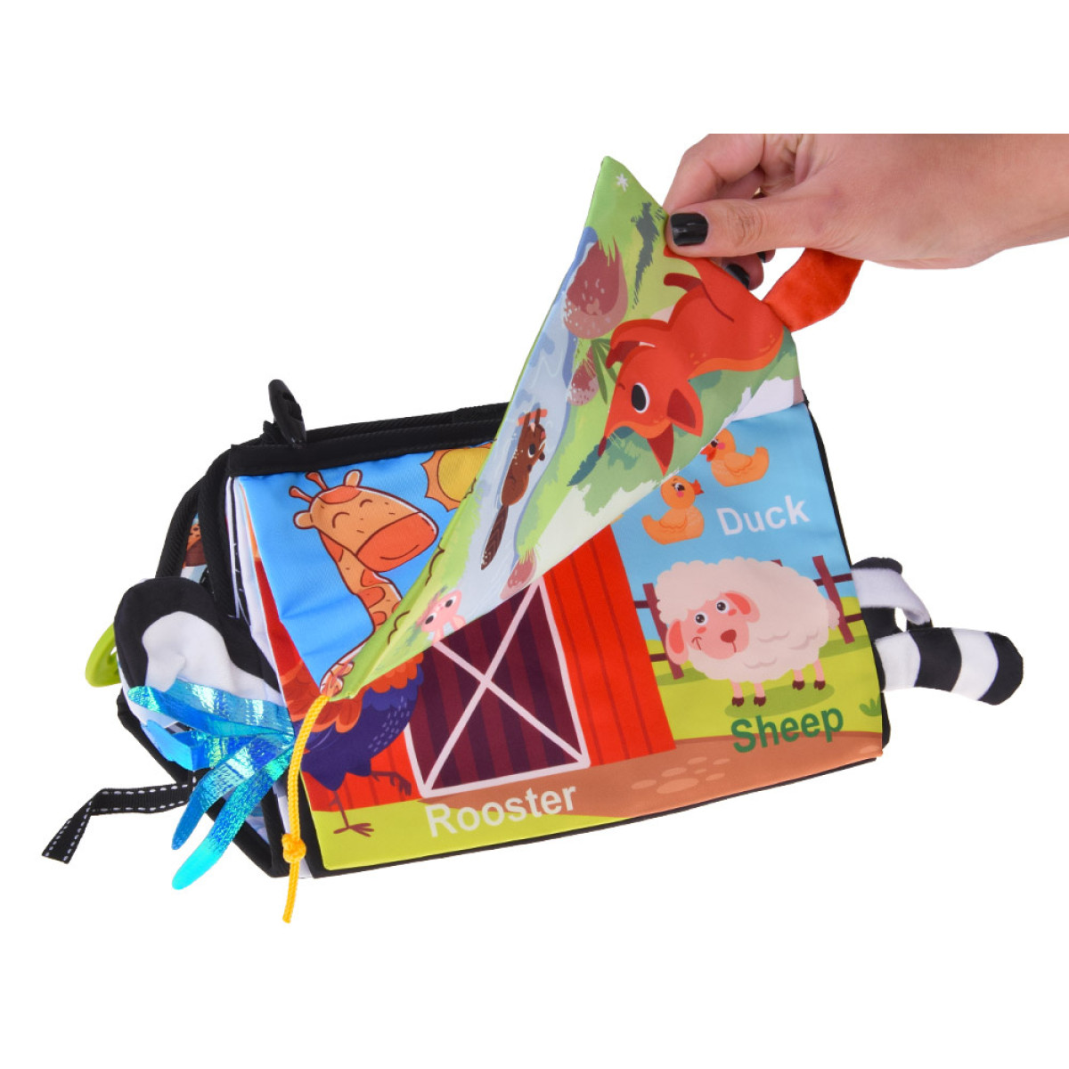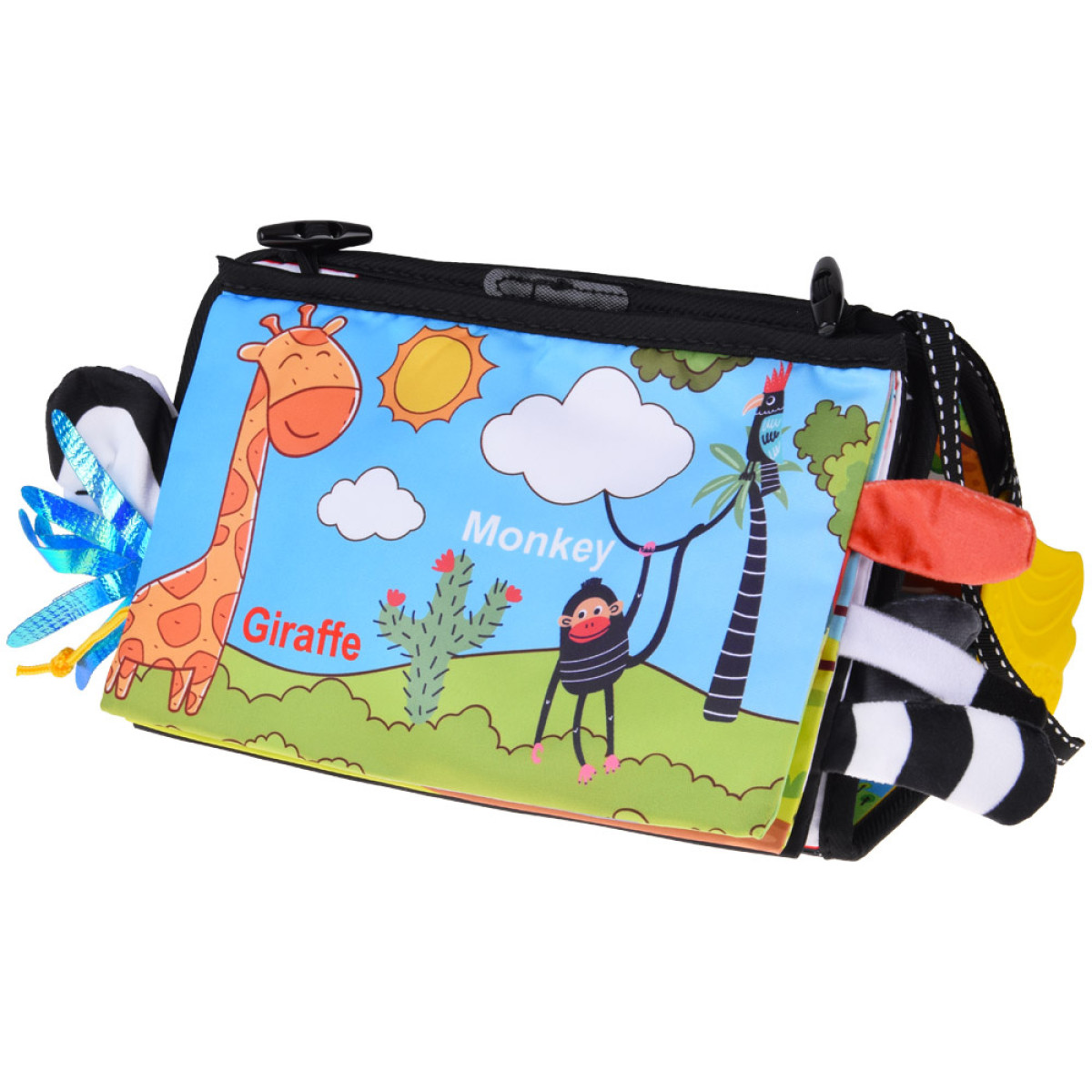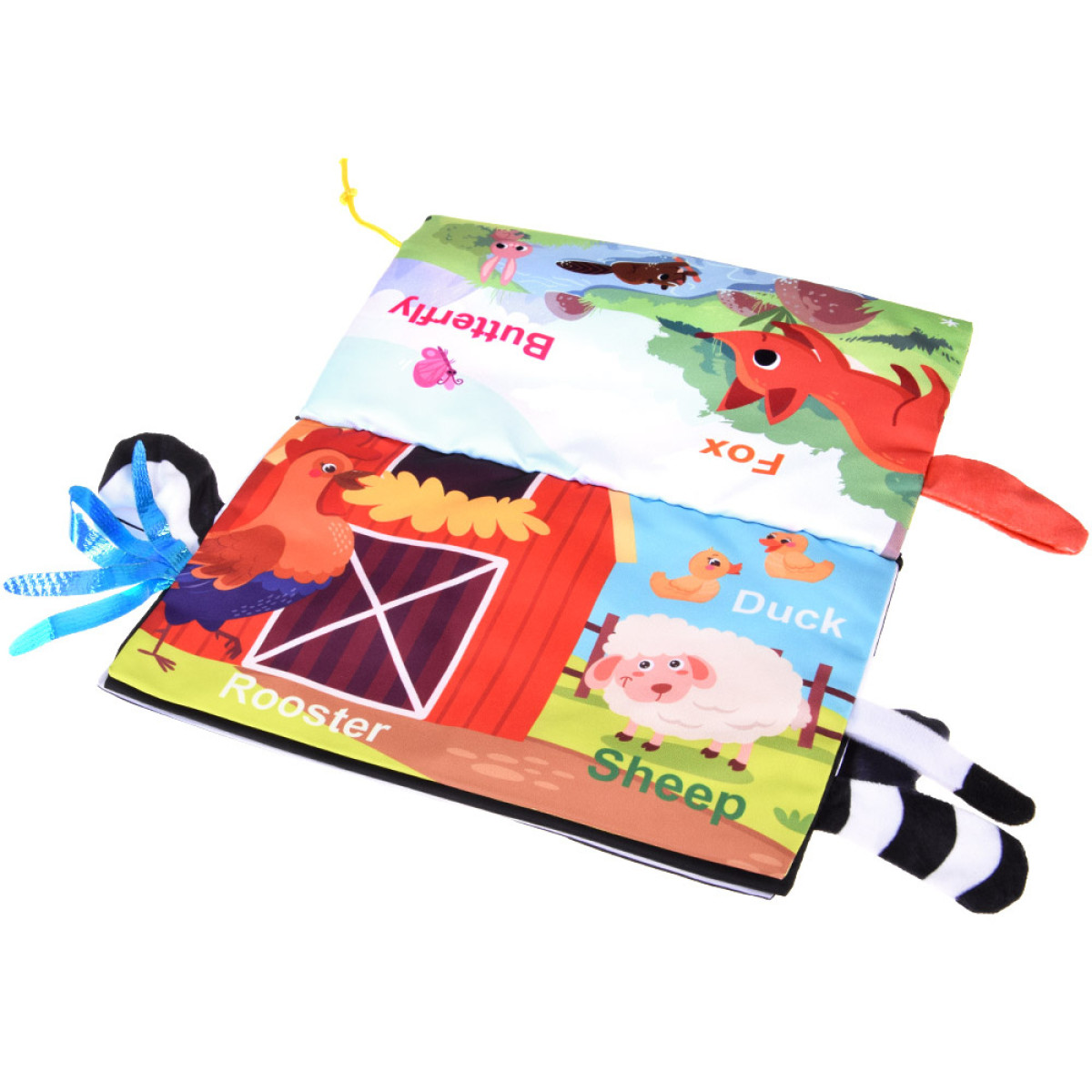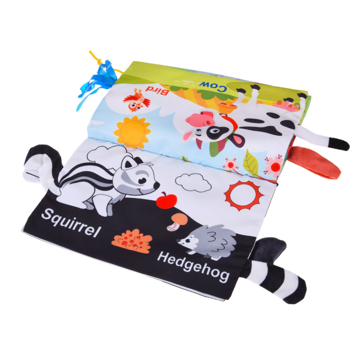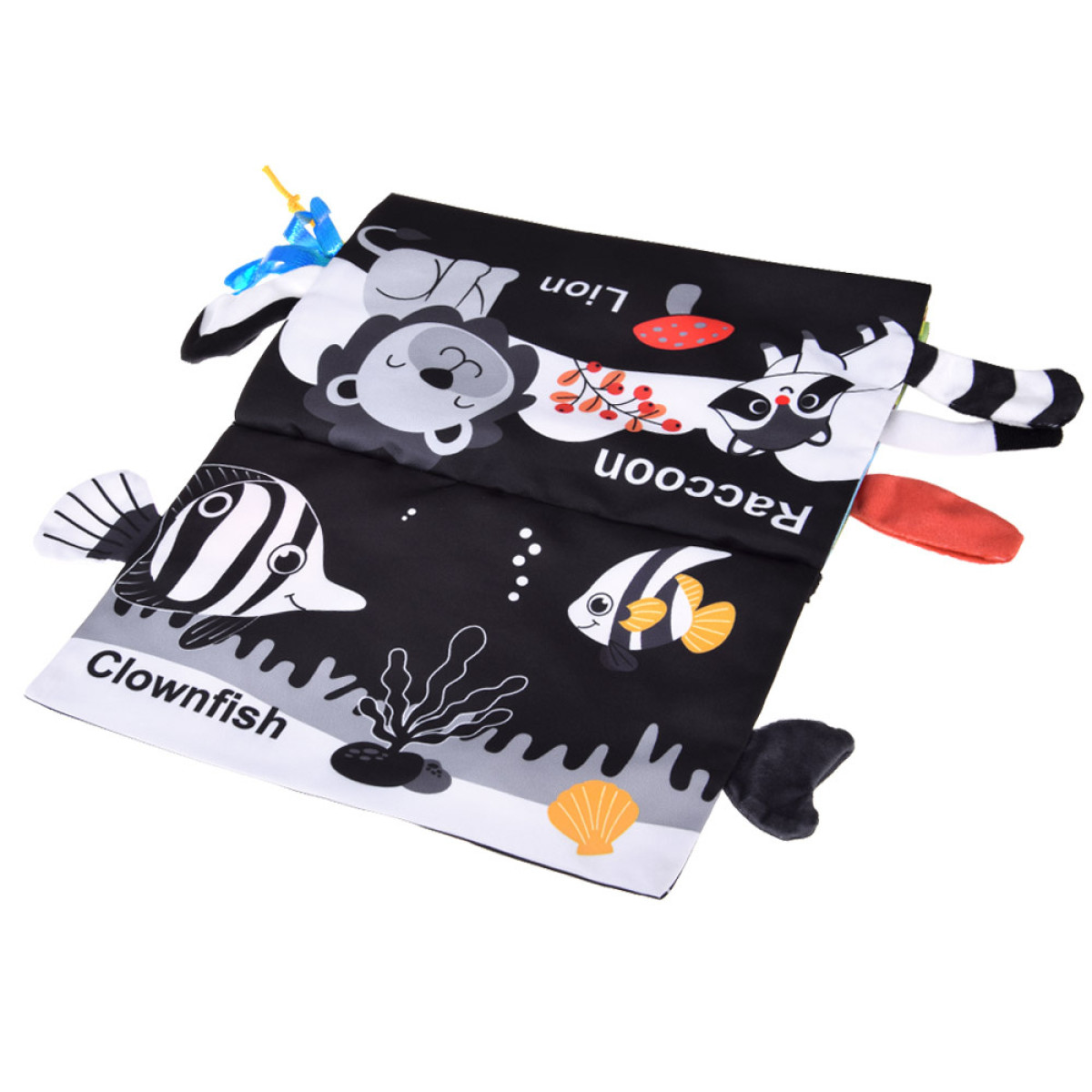 Otra komplekta daļa ir mīksta kontrastējoša grāmatiņa. Tā satur gan melnbaltus, gan krāsainus attēlus ar dzīvniekiem to dabiskajā vidē. Papildu dažādībai ir izvirzīti elementi – astes un spuras – kas katrā lapā ir ar atšķirīgu formu un faktūru, mudinot bērnu pieskarties un iepazīt pasauli caur tausti. Grāmatiņas lapas ir papildinātas ar čaukstošiem un pīkstošiem elementiem, kas piesaista mazuļa uzmanību un attīsta viņa ziņkārību.