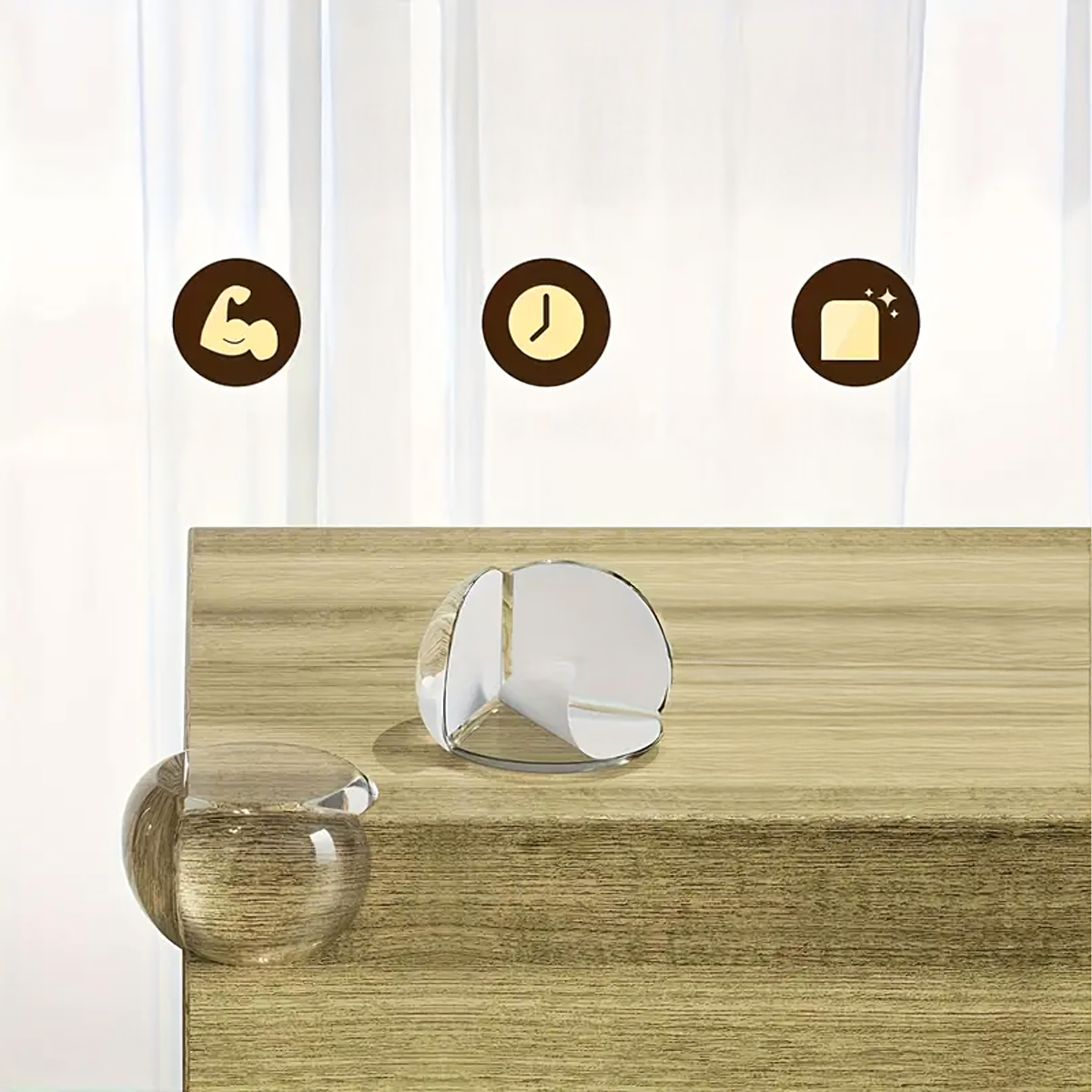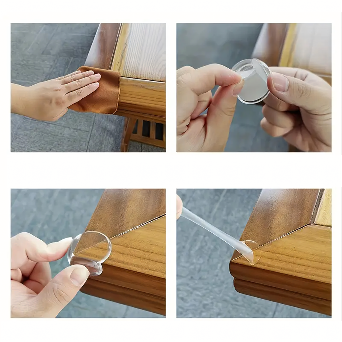 Mēbeļu stūru aizsargi 4 gab. – caurspīdīgi, elastīgi silikona aizsargi, kas pasargā bērnus un pieaugušos no traumām, ja notiek trieciens pret stūriem. Tie ir neredzami, diskrēti, viegli uzstādāmi un noņemami, piemēroti lielākajai daļai virsmu (koks, stikls, lamināts, akmens). Lieliski piemēroti mājām, bērnudārzam vai birojam – drošība un estētika vienā!