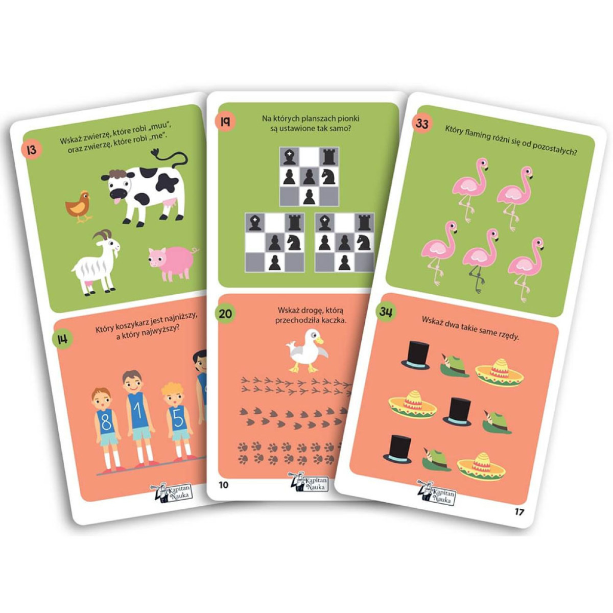 Vairāk nekā 170 mīklas nodrošina daudzas stundas radošas izklaides, tostarp atkarību noteikšanu, līdzību un atšķirību meklēšanu, izmēru salīdzināšanu un nākamā elementa noteikšanu secībā. Atbildes uz uzdevumiem ir kartīšu aizmugurē, tāpēc varat viegli pārbaudīt uzdevumu pareizību. Mīklu grūtības pakāpe ir pielāgota bērnu vecumam un attīstības līmenim.