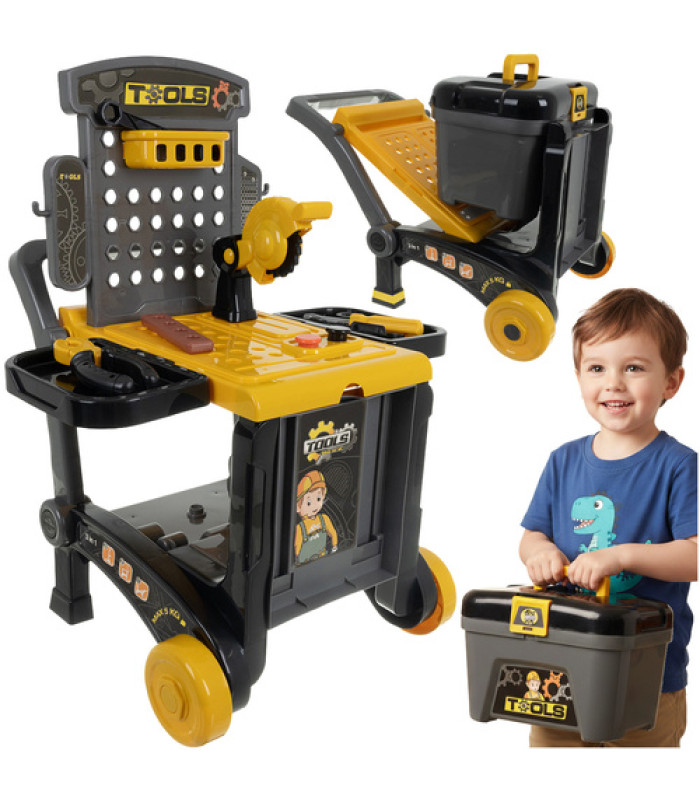 Šis rotaļlietu komplekts ir ideāls maziem meistariem, kuri vēlas drošā un radošā veidā remontēt, būvēt un iepazīt instrumentu pasauli. Šī daudzfunkcionālā darbnīca piedāvā bērniem plašas iespējas - tā var darboties kā klasiska darba vieta, mobilais ratiņš vai praktiska ķerra. Spēle attīsta iztēli, manuālās prasmes un ļauj bērnam justies kā īstam mehāniķim.