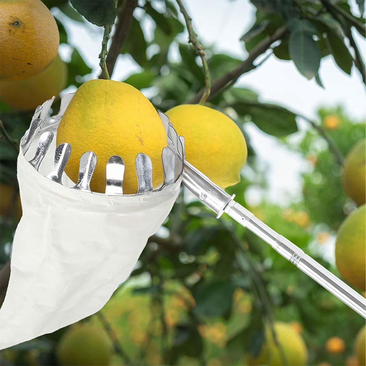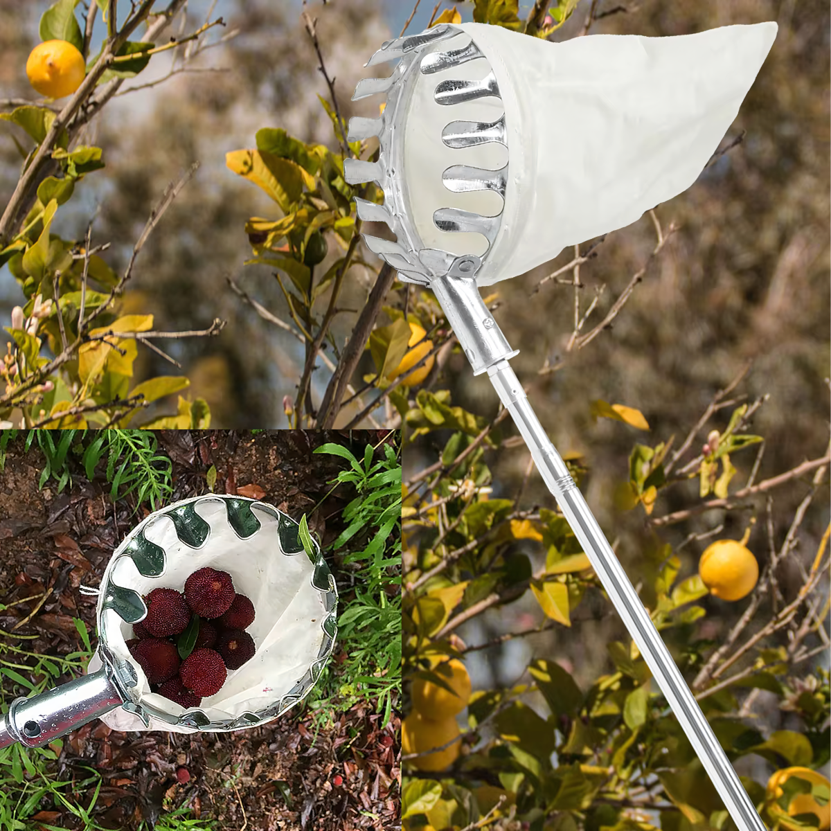Teleskopiskais augļu savācējs ar četrām uzgaļiem