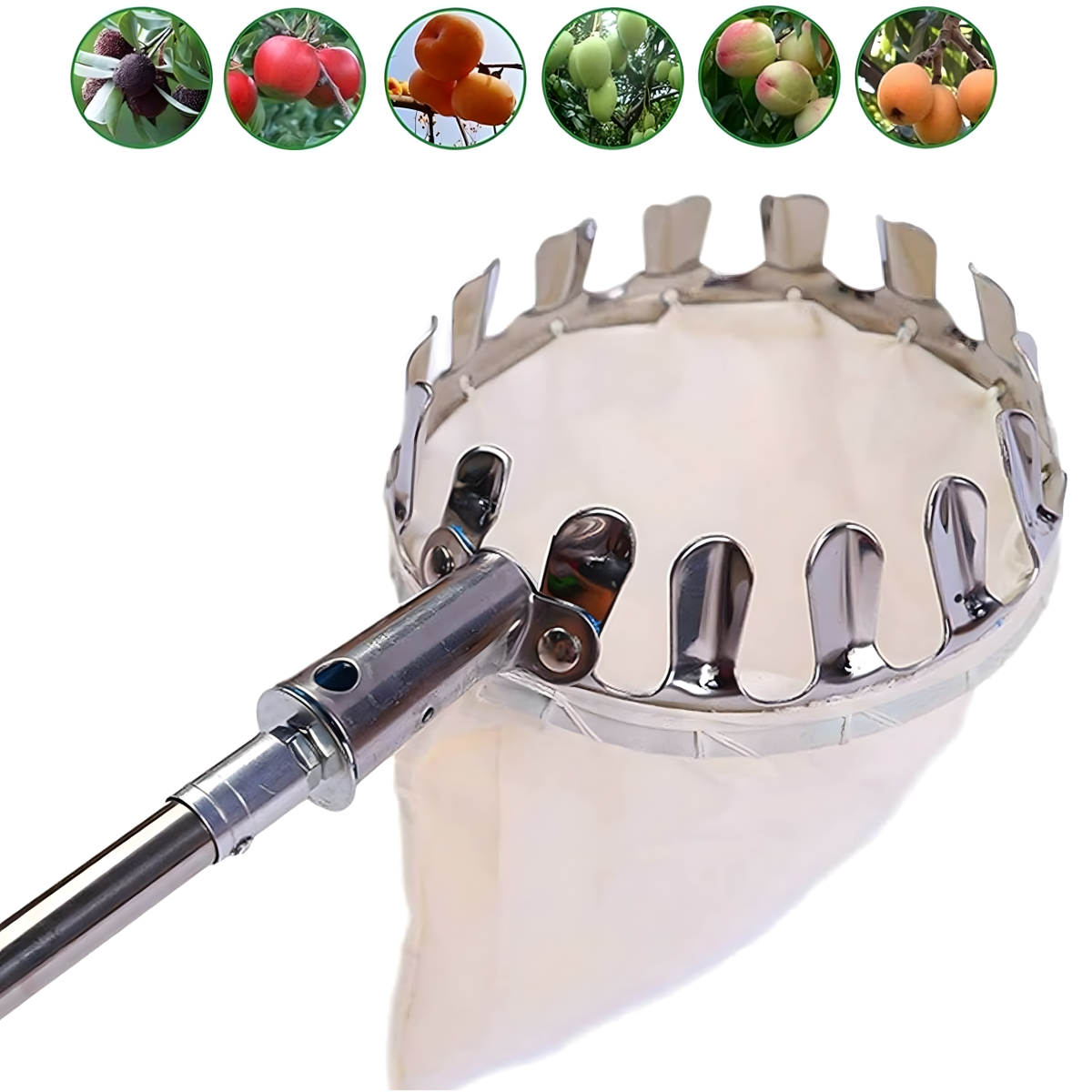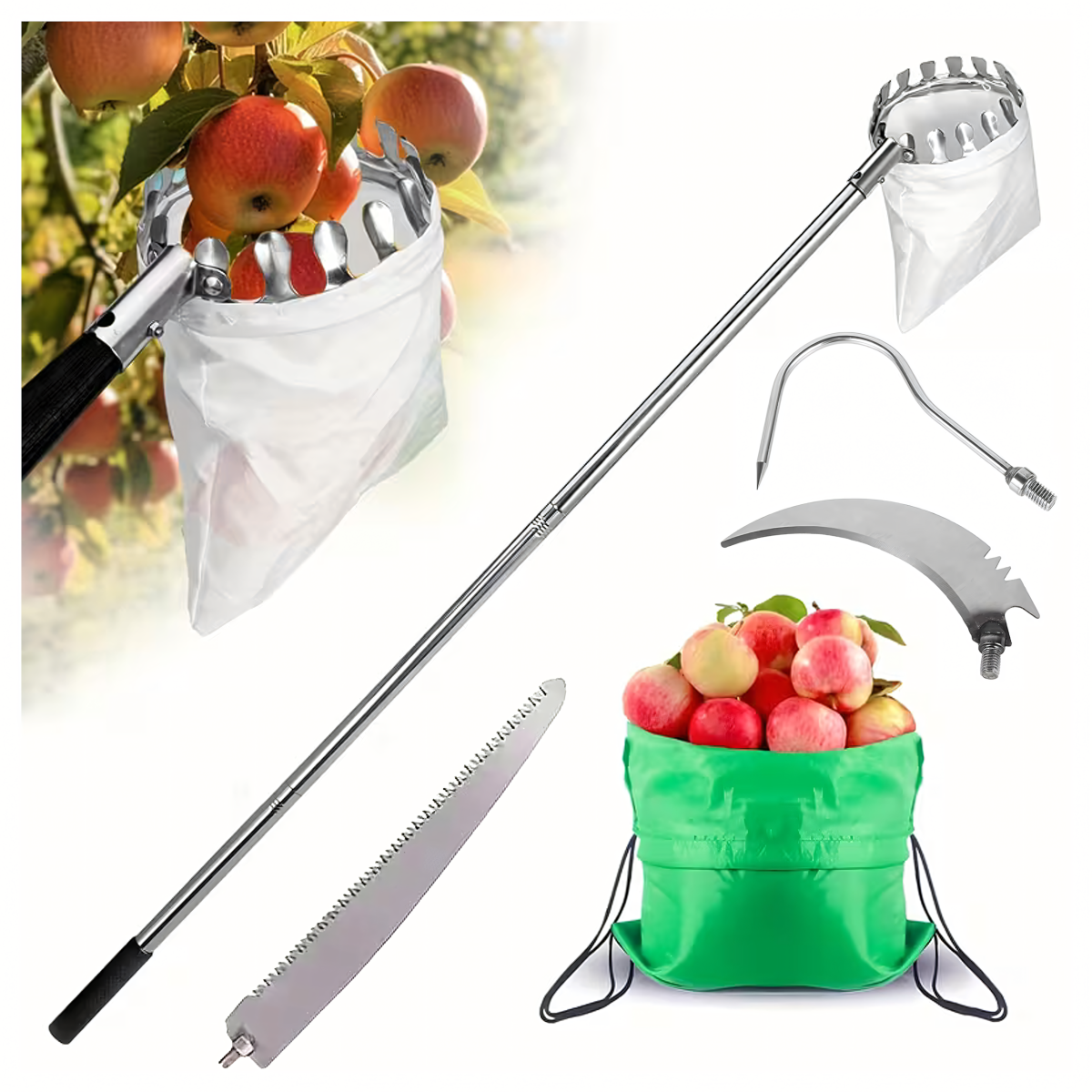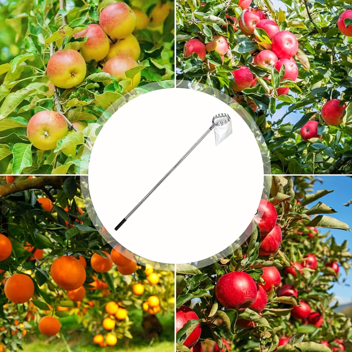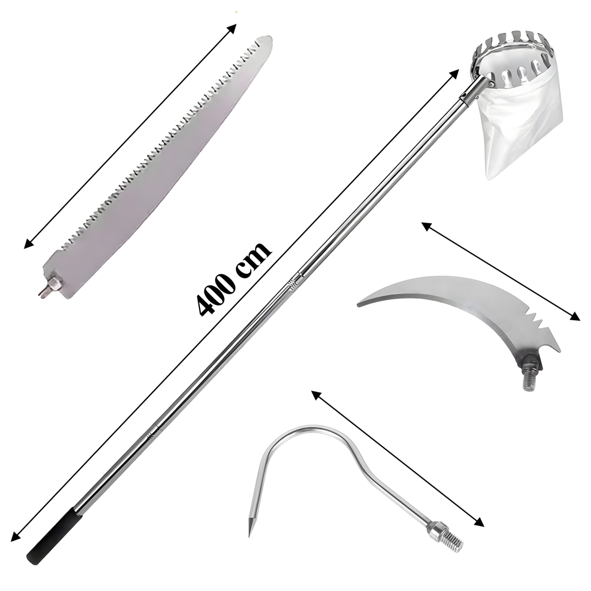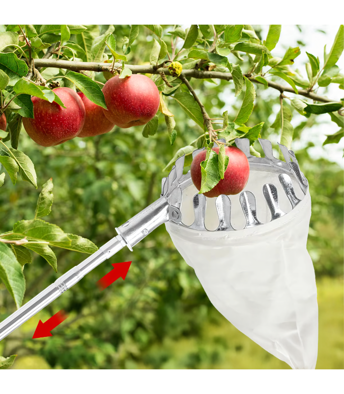 Teleskopiskais augļu savācējs ar četrām uzgaļiem ir lielisks instruments augļu vākšanai no augstiem kokiem. Ar 400 cm garu rokturi, šis savācējs ir piemērots dažādu augļu ievākšanai, nodrošinot ērtu un efektīvu darbu.