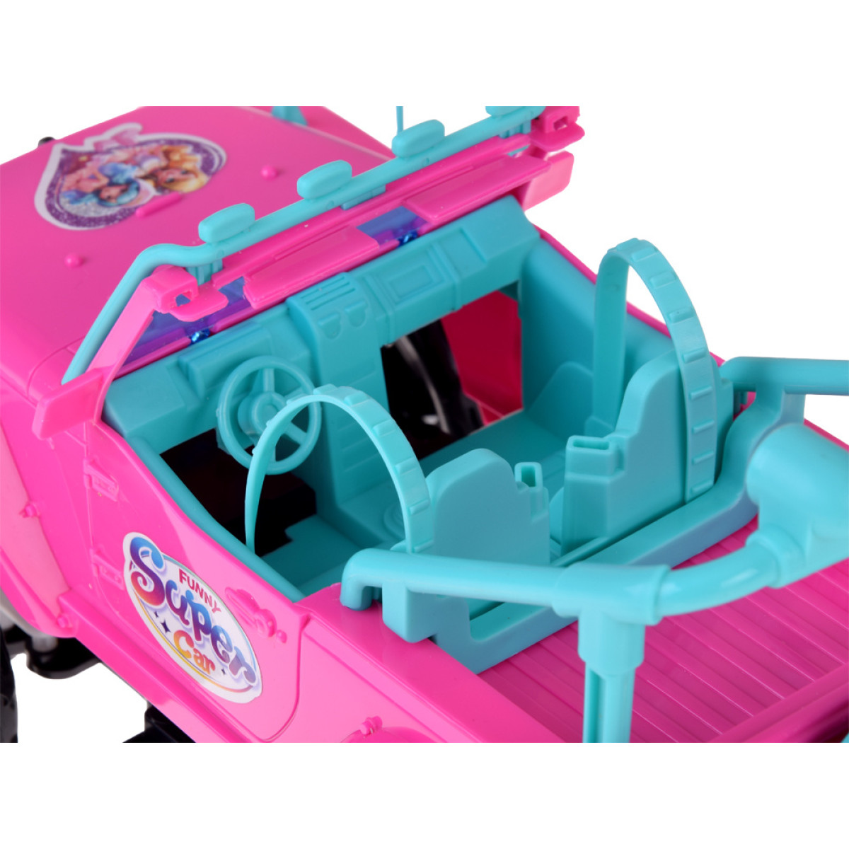 tālvadības rozā apvidus auto lellēm ar figūriņām