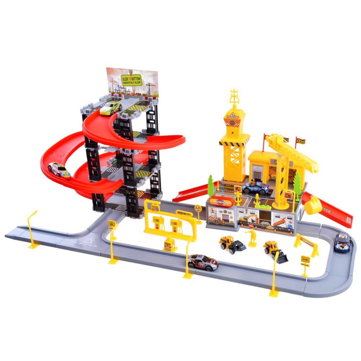 Daudzlīmeņu stāvvieta ar ceļiem automašīnām ir piemērota die cast tipa transportlīdzekļiem. Spēlēšanās ar šādu komplektu nodrošinās daudz emociju un pozitīvi pavadītu laiku. Veikals Jokomisiada piedāvā plašu rotaļlietu klāstu, kas tematiski saistītas ar stāvvietu, trasi, būvlaukumu. Komplekts iepakots efektīvā iepakojumā, lieliski piemērots kā dāvana.