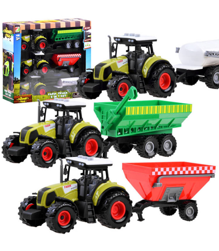 Traktoru un piekabju komplekts 3 x Traktors + piekabe zemniekam ZA3908
