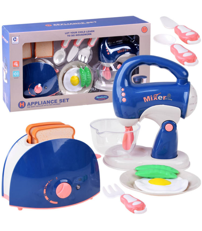 Mikseris ir neaizstājams virtuves piederums, kas palīdzēs pagatavot gardus ēdienus un saldumus. Bet tas nav viss - komplektā ietilpst arī tosteris ar grauzdiņiem, jo grauzdiņš bieži vien ir brokastu karalis: kraukšķīgs, smaržīgs un garšīgs. Šajā komplektā mazais pavārs var pagatavot gardus grauzdiņus ar ceptu olu un zaļajiem zirnīšiem, kas ir ideālas brokastis lellēm un lāčiem.