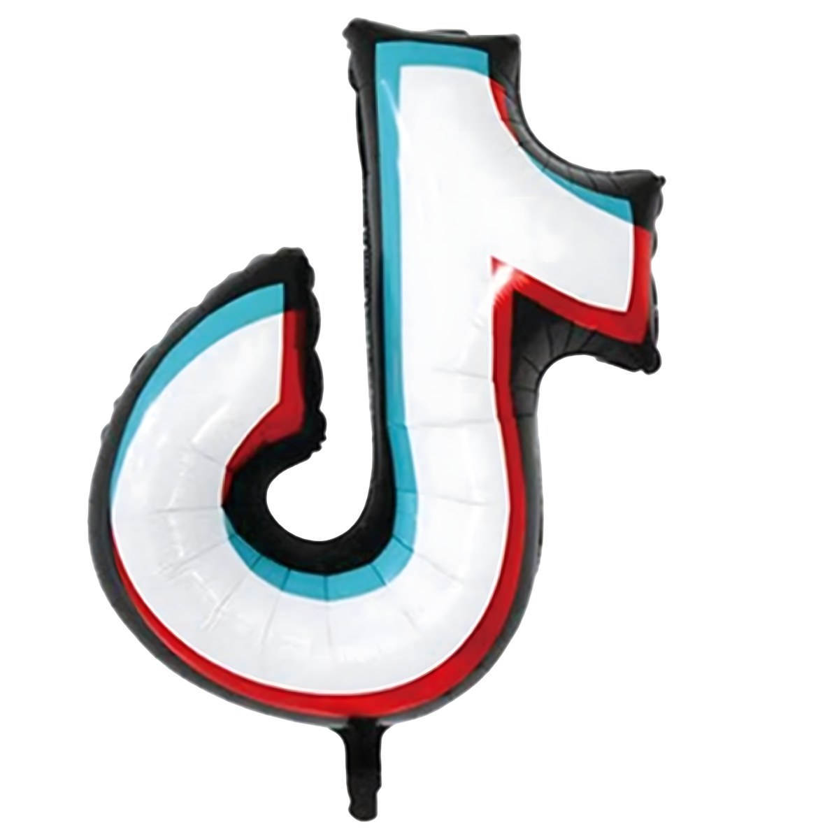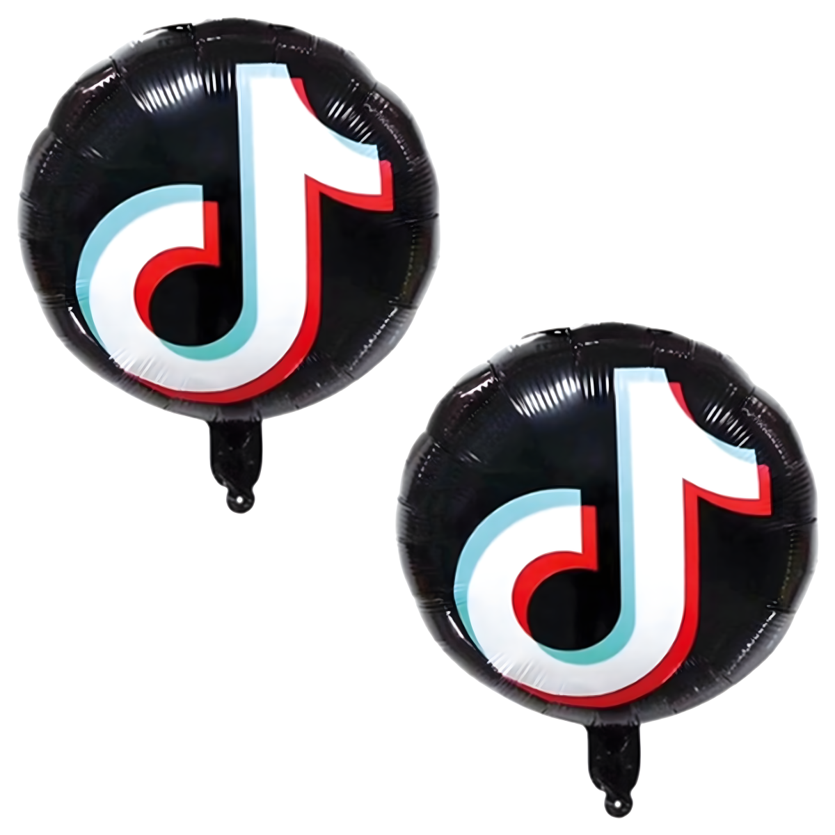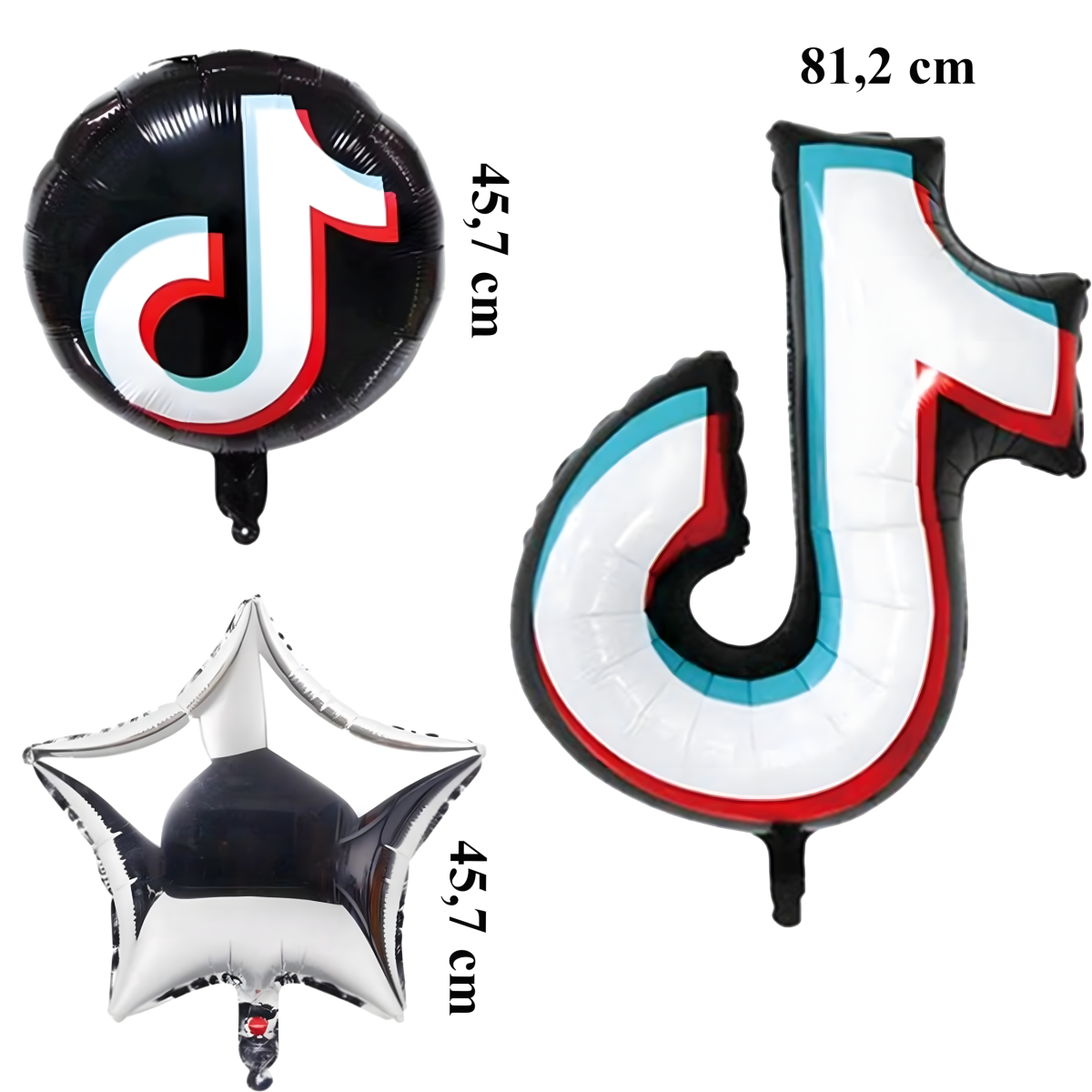 Balonu komplekts TikTok 5 gab. – liela notiņa 81,2 cm, 2 melni apaļi baloni TikTok 45,7 cm un 2 sudraba zvaigznes. Ideāla dekorācija dzimšanas dienām un ballītēm sociālo mediju stilā!