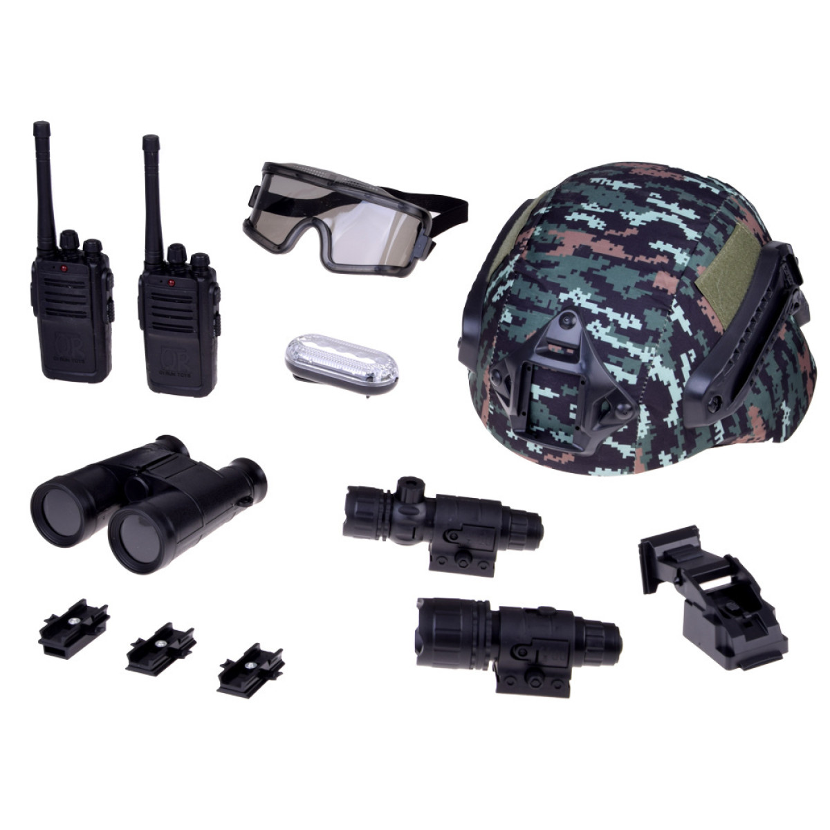 karavīra komplekts ar ķiveri, binokli, lāzeru, lukturīti un rācijām moro za5310