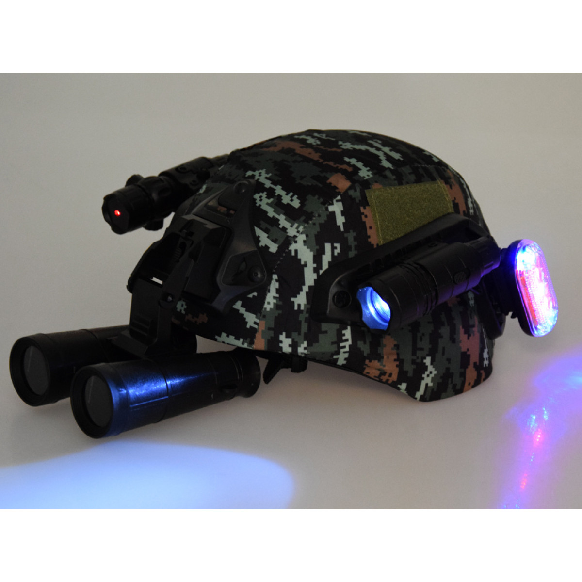 aizsargbrilles lieliski papildina visu komplektu, lai bērns justos kā īsts profesionāls karavīrs. īpaši iespaidīgi gaismas efekti izskatās tumšākās telpās.