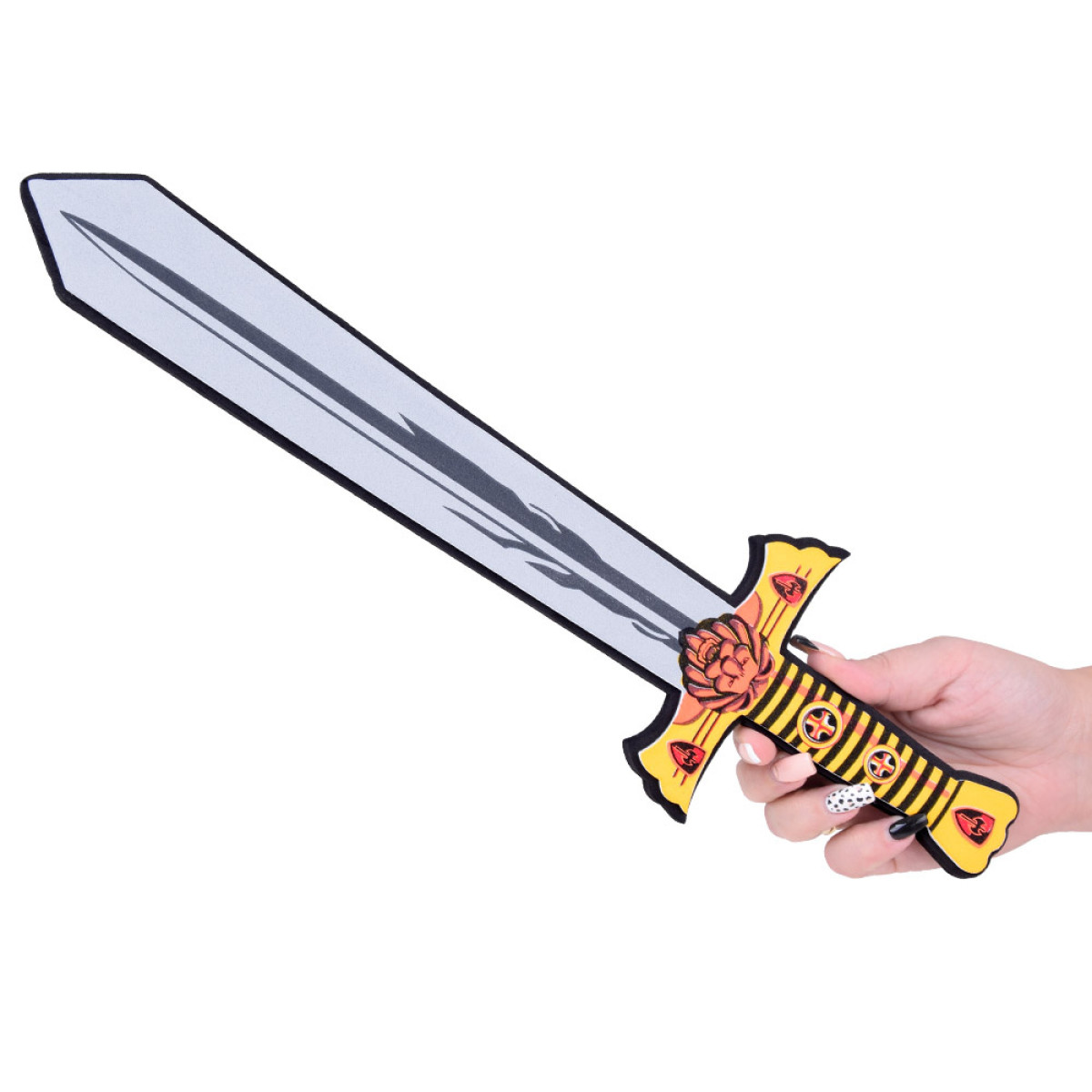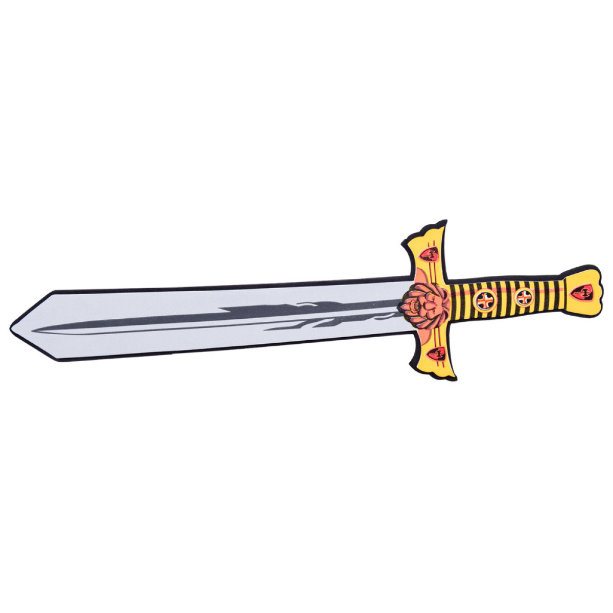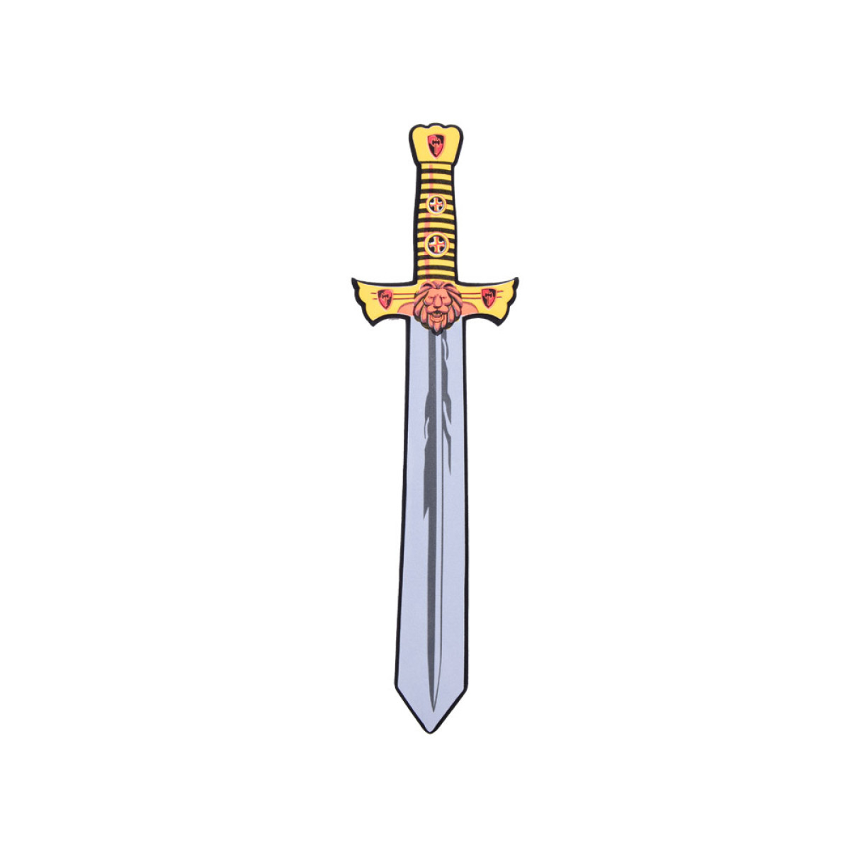 Bērnu zobens un vairogs, izgatavoti no drošas putas. Piesaista ar savām krāsām un izskatu. Šī mīkstā un elastīgā konstrukcija nodrošina ne tikai enerģisku spēli, bet arī garantē drošību, novēršot nobrāzumus un sāpīgus triecienus. Tagad jūsu bērns var iejusties bruņinieka lomā un meklēt princesi. Šis komplekts ir lielisks bruņinieka vai karaļa tērpa papildinājums un palīdzēs attīstīt intereses un kaislības. Ideāls papildinājums karnevāla ballēm un teātra izrādēm. Komplekts ir ideāls turnīru spēlēm. Lauvas motīvs uz vairoga un zobena noteikti stimulēs jūsu bērna iztēli! Ar šo komplektu jūsu mazulis varēs parādīt īsta bruņinieka īpašības, piemēram, drosmi un godu!