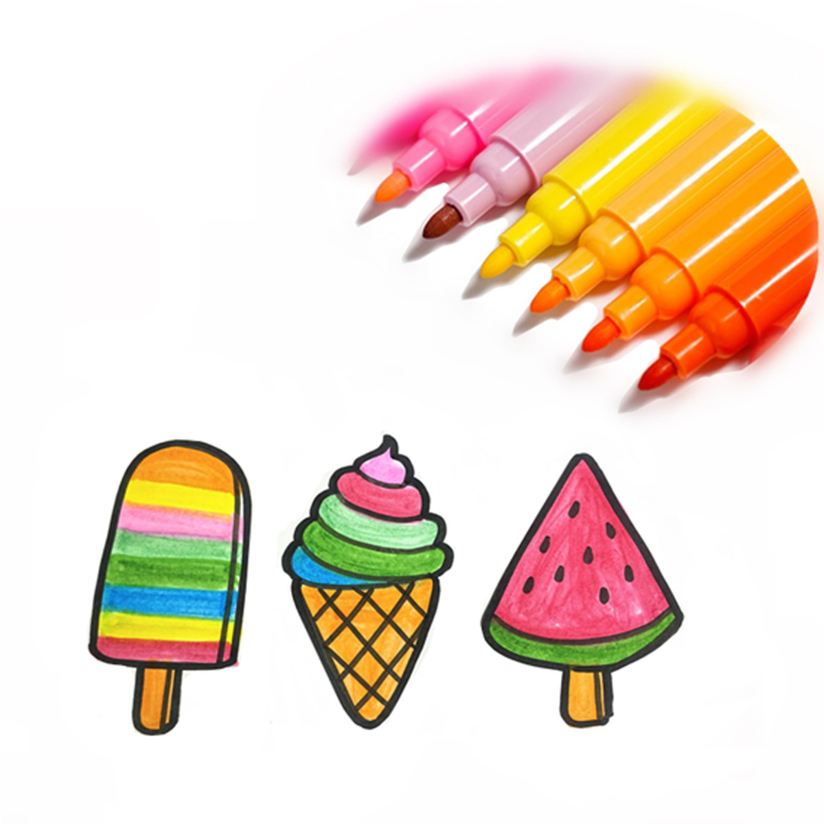 Marķieri un krītiņi piemērotā izmērā bērna rokām, padarot zīmēšanu ērtu.