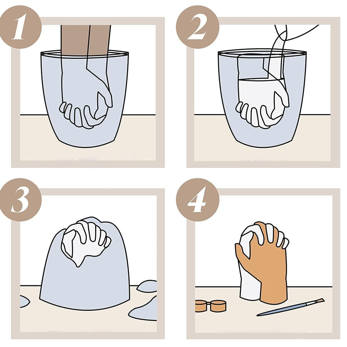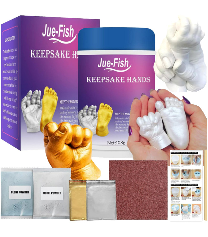 Šī ir lieliska metode, lai izveidotu reālistiskus bērnu roku vai kāju nospiedumus, kas būs vērtīga atmiņa visam mūžam. Lieliska dāvana jaunajiem vecākiem, ģimenēm vai īpašiem gadījumiem, piemēram, kristībām vai dzimšanas dienām.