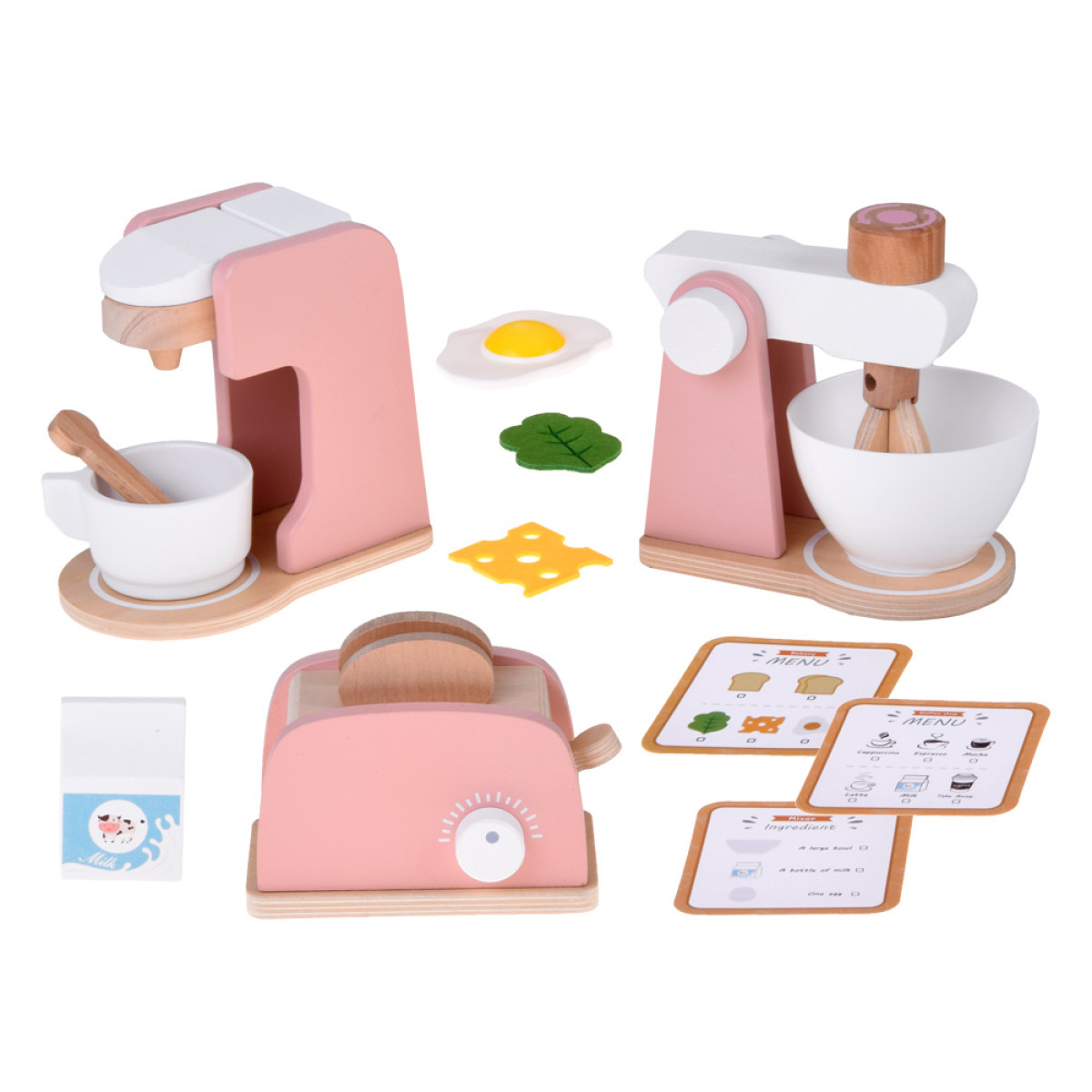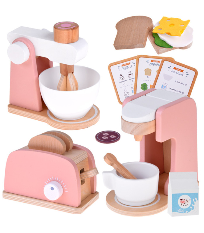 Pacel ikdienas rotaļas jaunā līmenī ar skaistu koka sadzīves tehnikas komplektu, kurā ietilpst tosteris, kafijas aparāts, mikseris un piederumi. Šis komplekts ir radīts mazajiem pavāriem, kuri vēlas pagatavot gardas brokastis un desertus savām lellēm, lācīšiem vai draugiem.