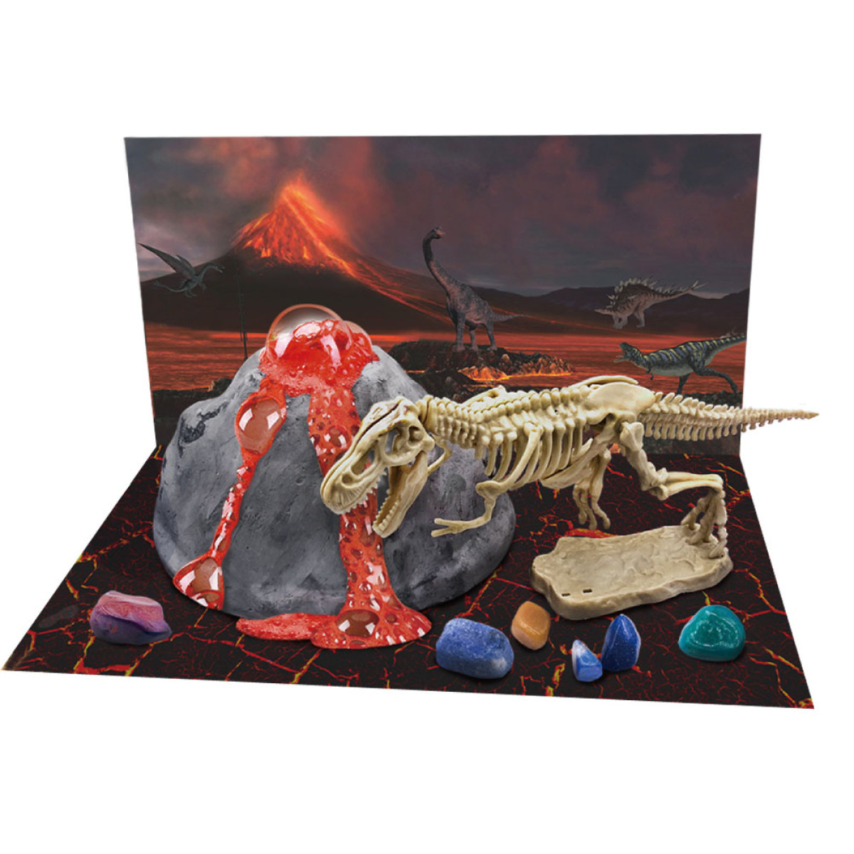 Izglītības un radošs komplekts, kas paredzēts bērniem, kuriem patīk dažāda veida eksperimentu komplekti un dinozauru fani. Komplekts apvieno divas spēles, tāpēc izklaide ilgst vēl ilgāk. Rotaļlieta ir ideāla ikvienam bērnam, kurš nākotnē vēlas kļūt par arheologu vai paleontologu.