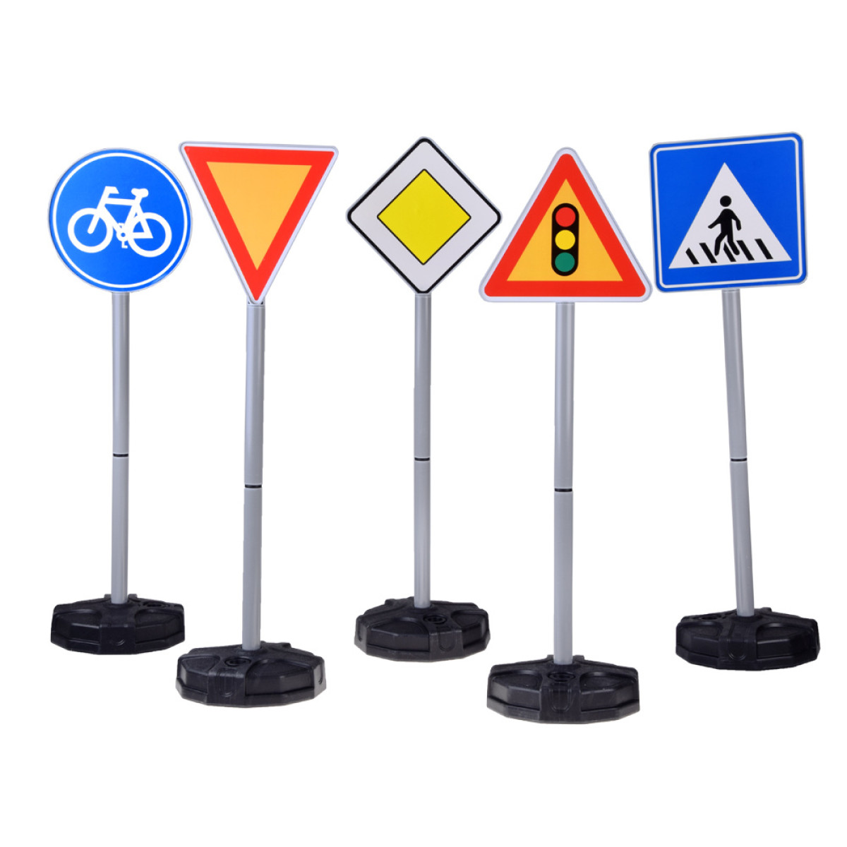 - 5 populāras ceļa zīmes: luksofors, gājēju pāreja, galvenais ceļš, rotācijas aplis, velosipēdu ceļš