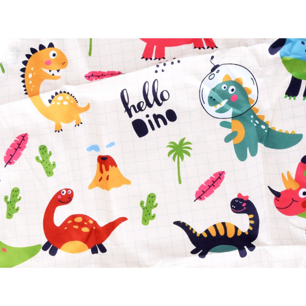 Komplekts izgatavots no materiāla ar burvīgu dinozauru grafiku, kas patiks jebkuram šefpavāram.