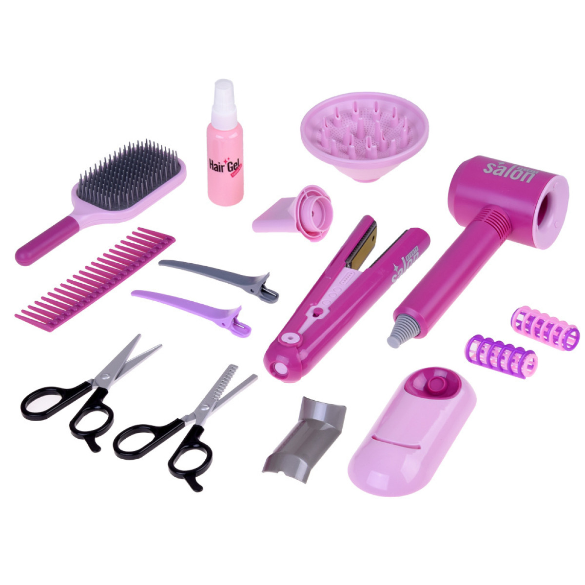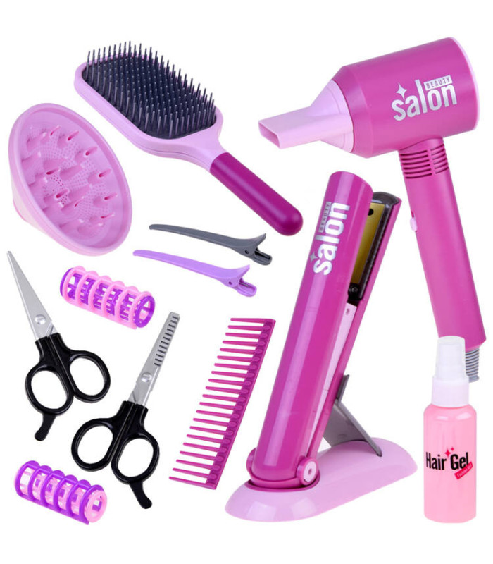Daudzdaļīgs aksesuāru komplekts satur visu nepieciešamo profesionālam frizētavas salonam. Tas ir ideāls katrai mazai meitenei, kura sapņo kļūt par frizieri nākotnē. Ar šo komplektu viegli rūpēties par mammas vai vecmammas matiem, kā arī izveidot dažādas frizūras.