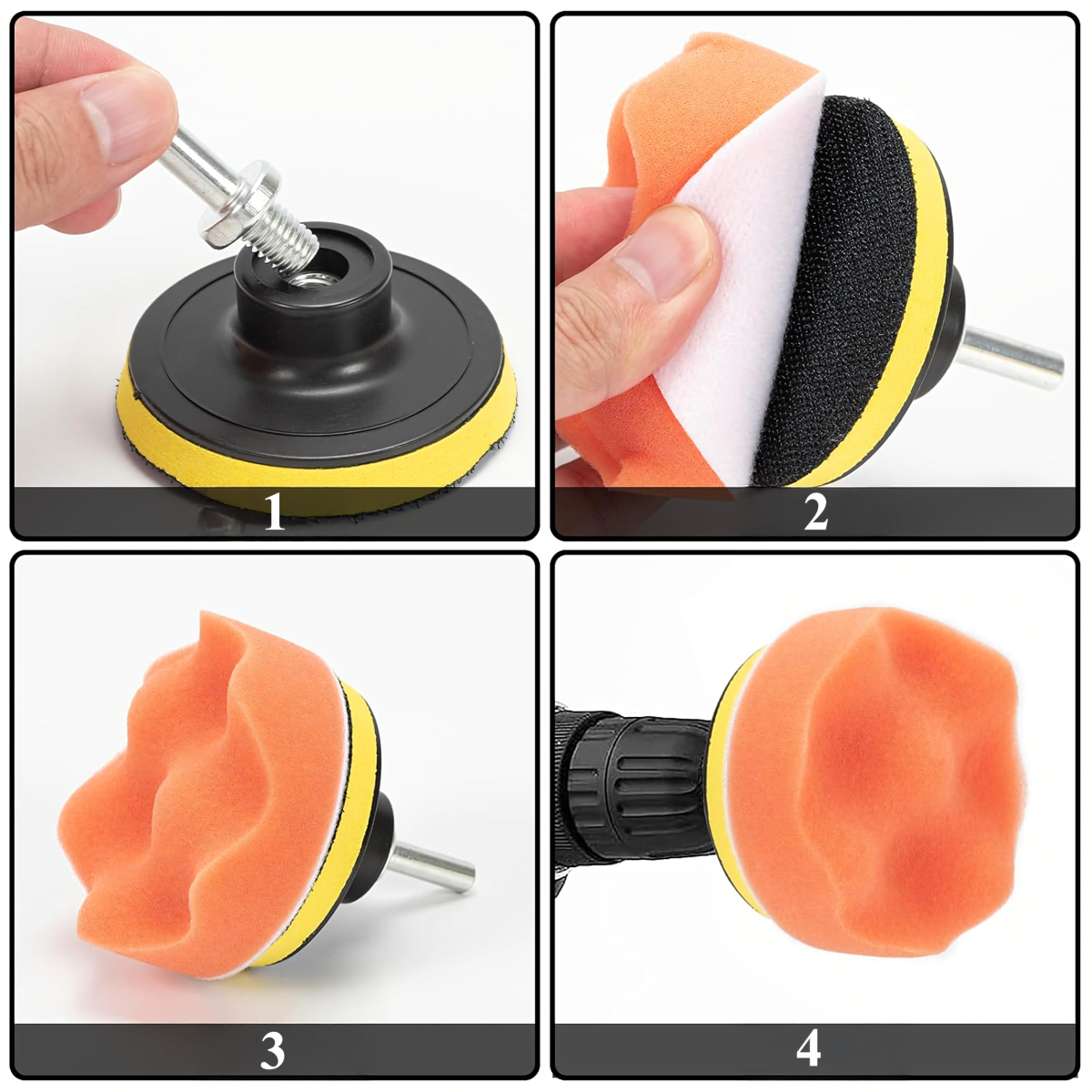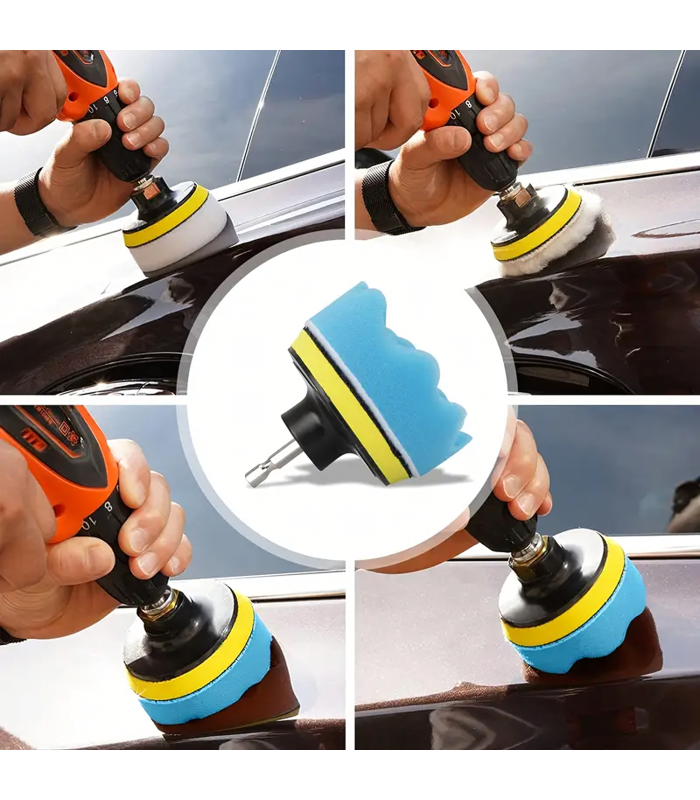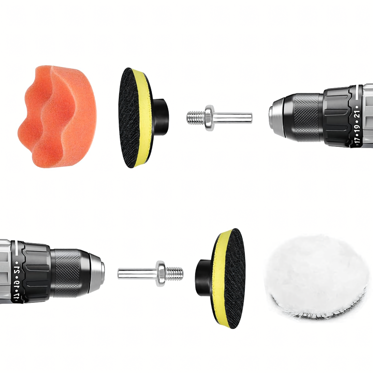 11 disku pulēšanas komplekts 80 mm ar adapteri – universālas sūkļveida diski urbjiem, skrūvgriežiem un pulētājiem, ideāli piemēroti lakam, stiklam, metālam un mēbelēm. Dažāda cietības pakāpe + vilnas pulēšanas disks nodrošina profesionālu efektu un pilnīgu kontroli darba laikā.