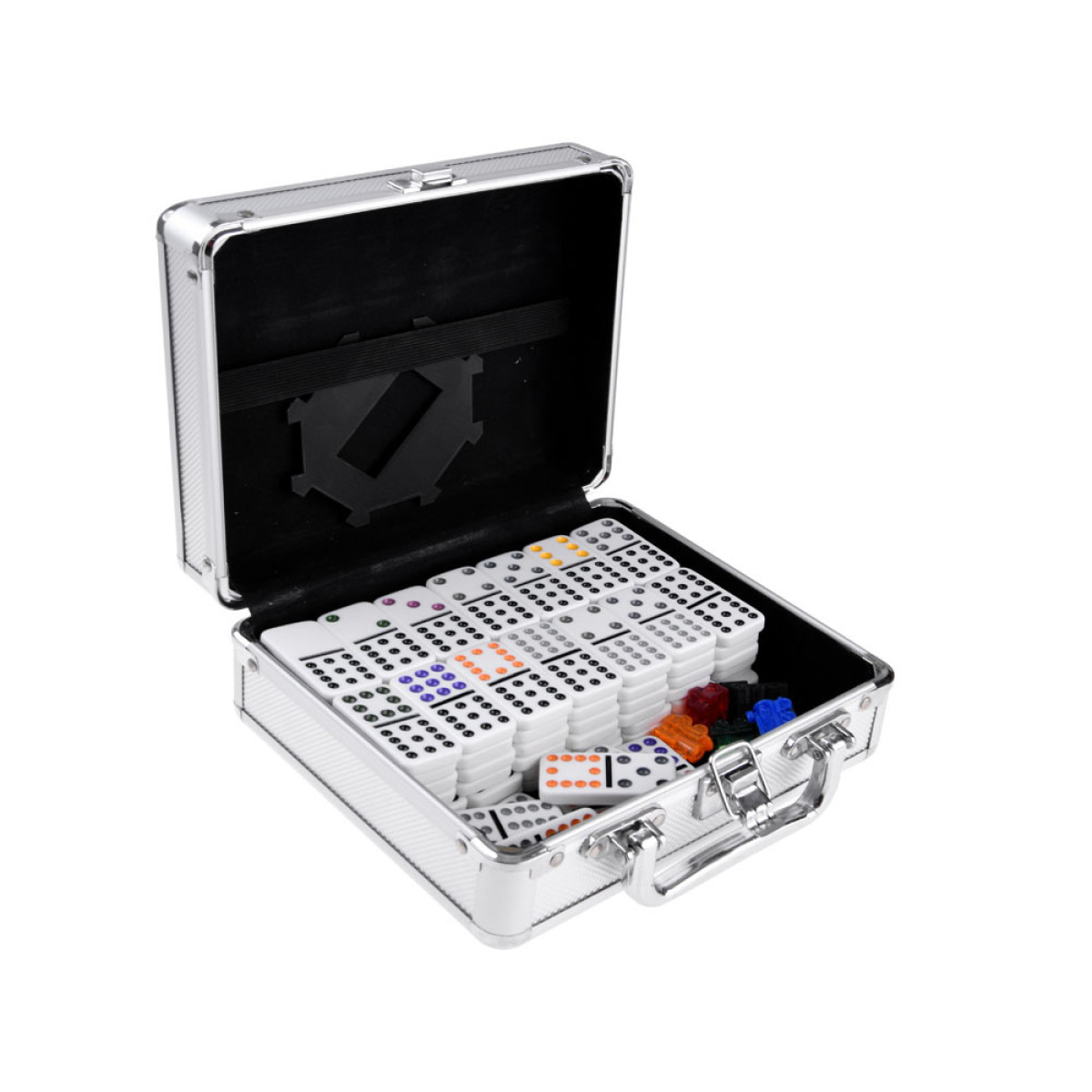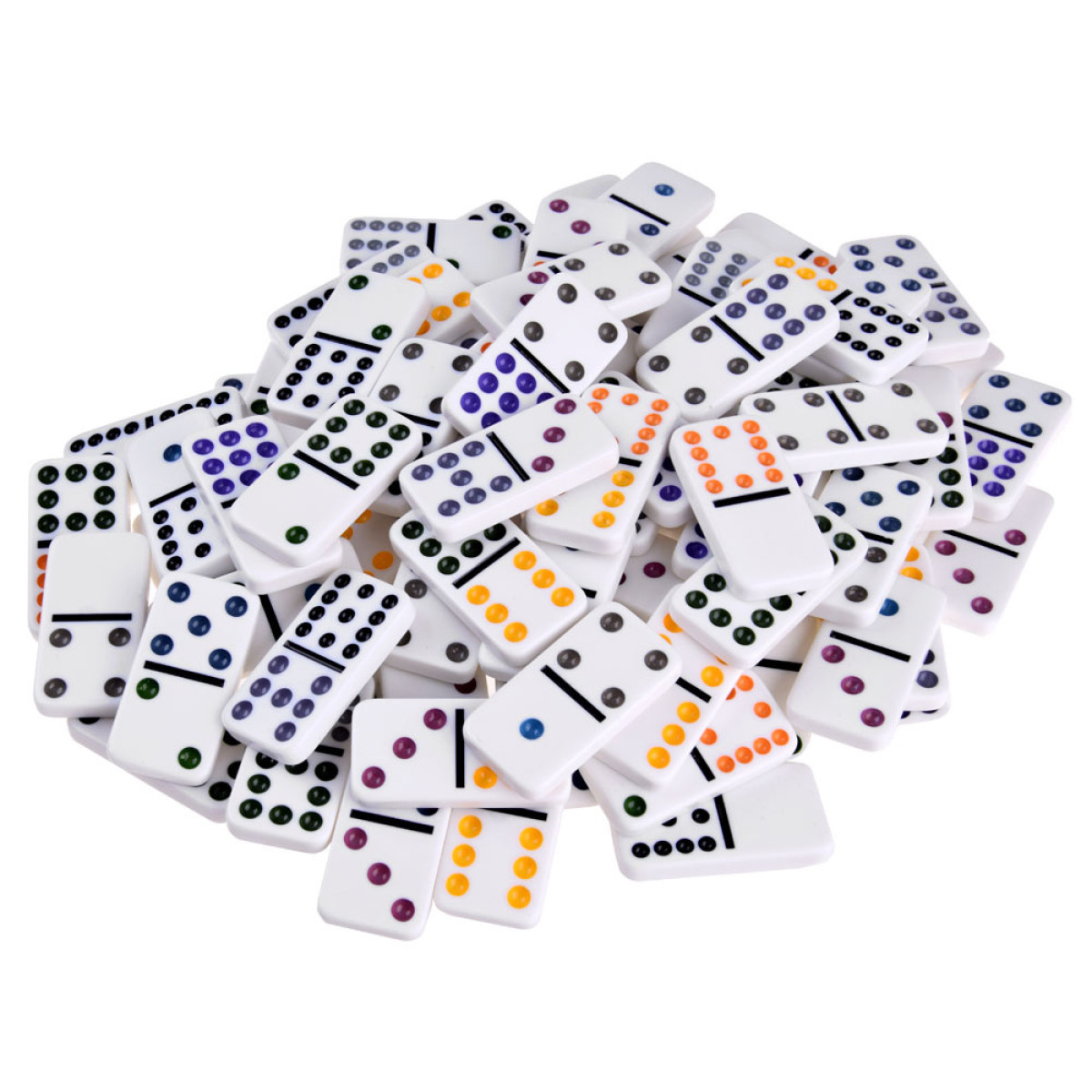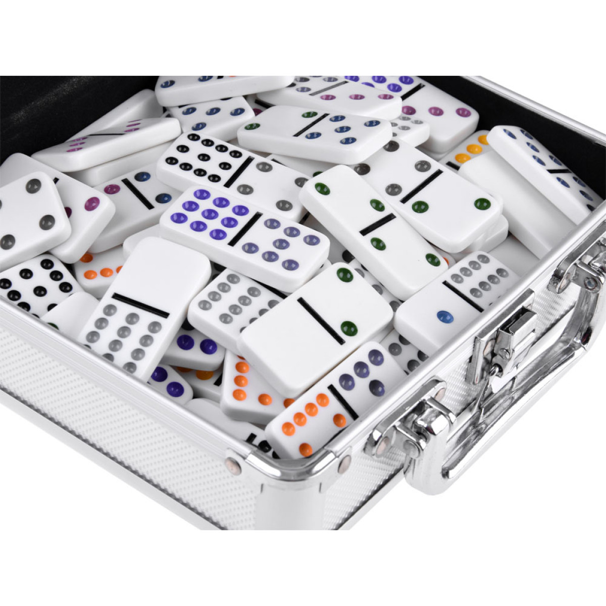 Domino ir viena no senākajām un pazīstamākajām spēlēm pasaulē. Komplektā ietilpst 91 domino flīze un spēles piederumi: punktu skaitīšanas tabula, krāsaini vilcieniņi un zobrats meksikāņu vilciena spēlei.