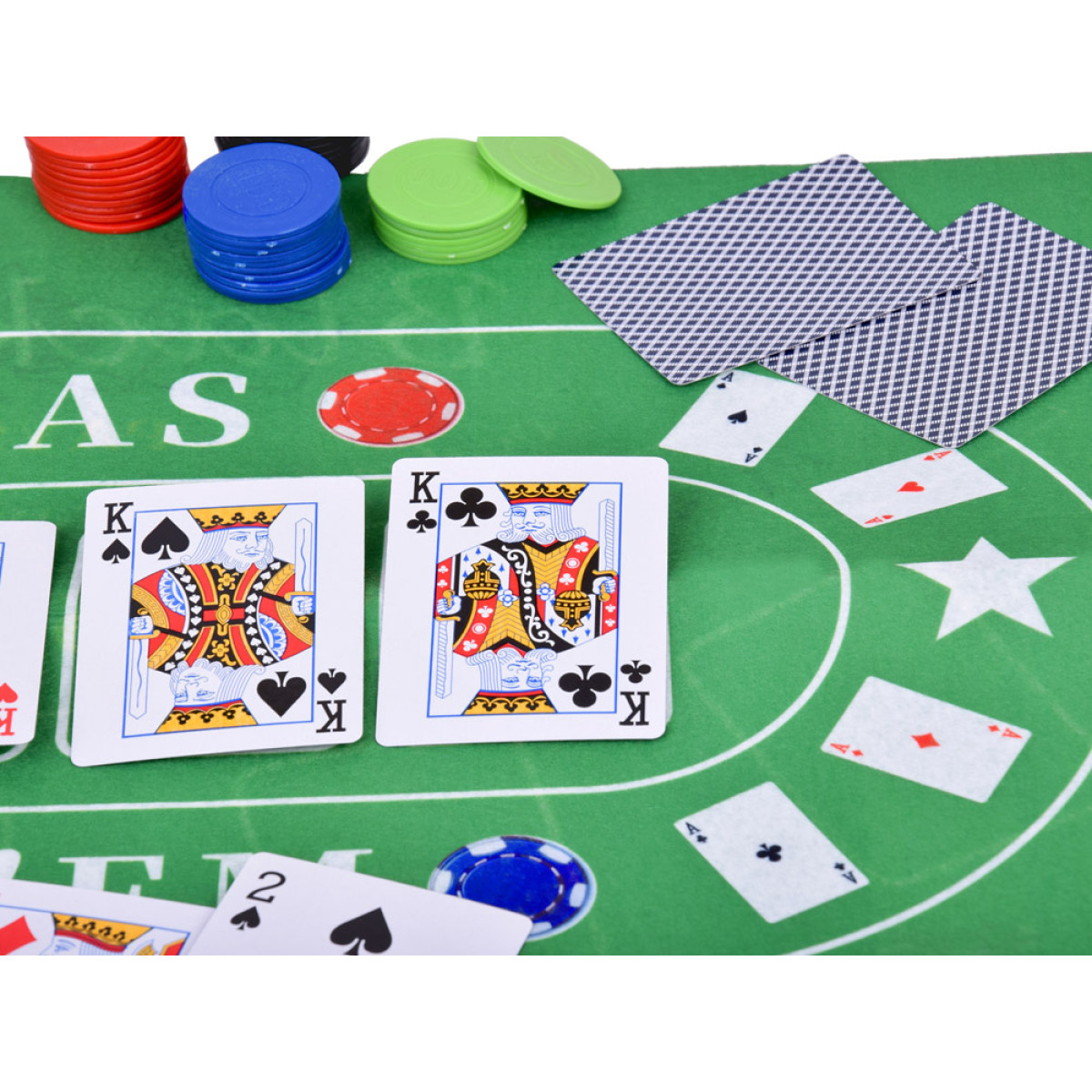 Šis iespaidīgais komplekts piedāvā divas populāras kāršu spēles - pokeru un blackjack, kas ir ideāli piemērotas bērniem, kuriem patīk spēlēt kārtis, ir gudri un spēj loģiski domāt.