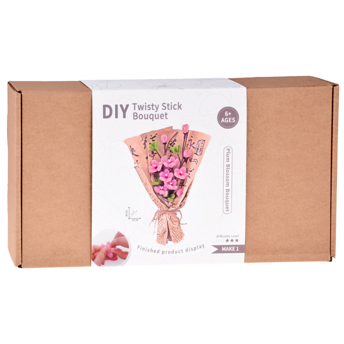 - Pabeigta pušķa izmēri: 39 cm x 6 cm x 18 cm.