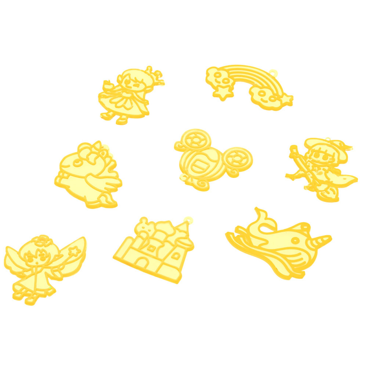 - 8 gumijoti šabloni: feja, ragana, princese, varavīksne, vienradzis, pils, narvalis, kariete