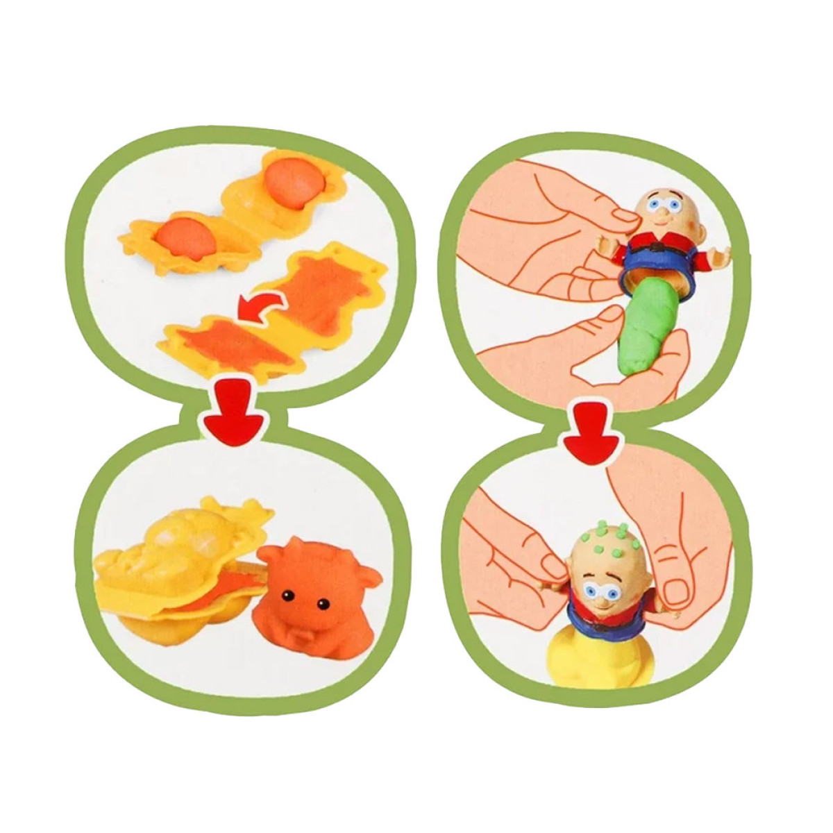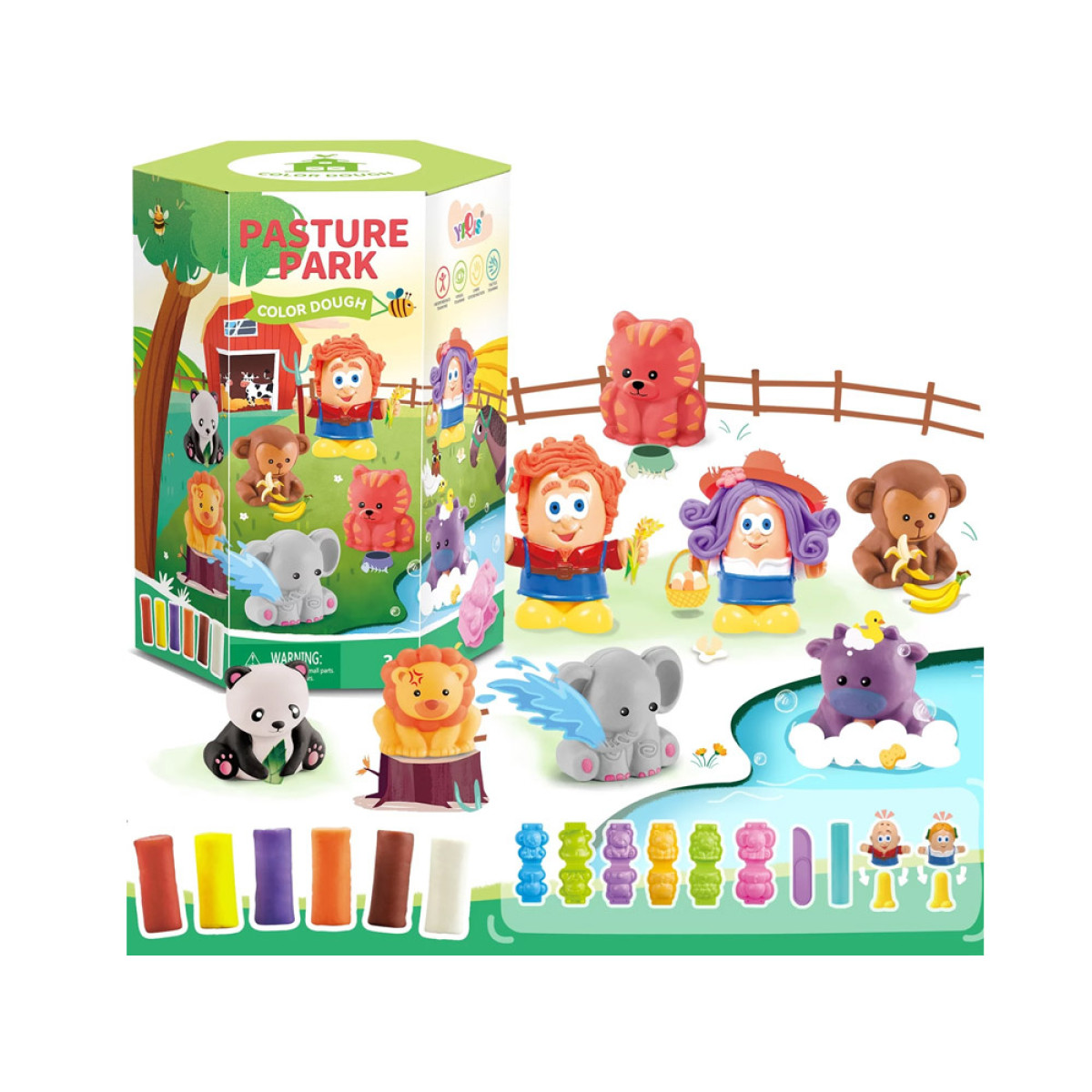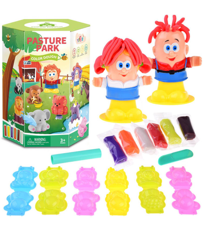 Lielisks komplekts katram bērnam, kurš mīl mākslas darbus. Plastilīna masu var izstiept, mīcīt un rullēt, tādējādi trenējot roku manuālās prasmes. Spēle attīsta bērna iztēli, koncentrēšanās spējas un māca atšķirt krāsas un formas. Komplektā iekļautas dažādu dzīvnieku formiņas, kurās var ievietot plastilīnu, lai izveidotu trīsdimensiju figūriņas. Par dzīvniekiem rūpējas sargi, kuriem var veidot dažādu krāsu un garumu frizūras. Lai to izdarītu, plastilīna gabaliņš jāievieto figūras iekšpusē un jāpiestiprina ar elementu ar kājiņām.