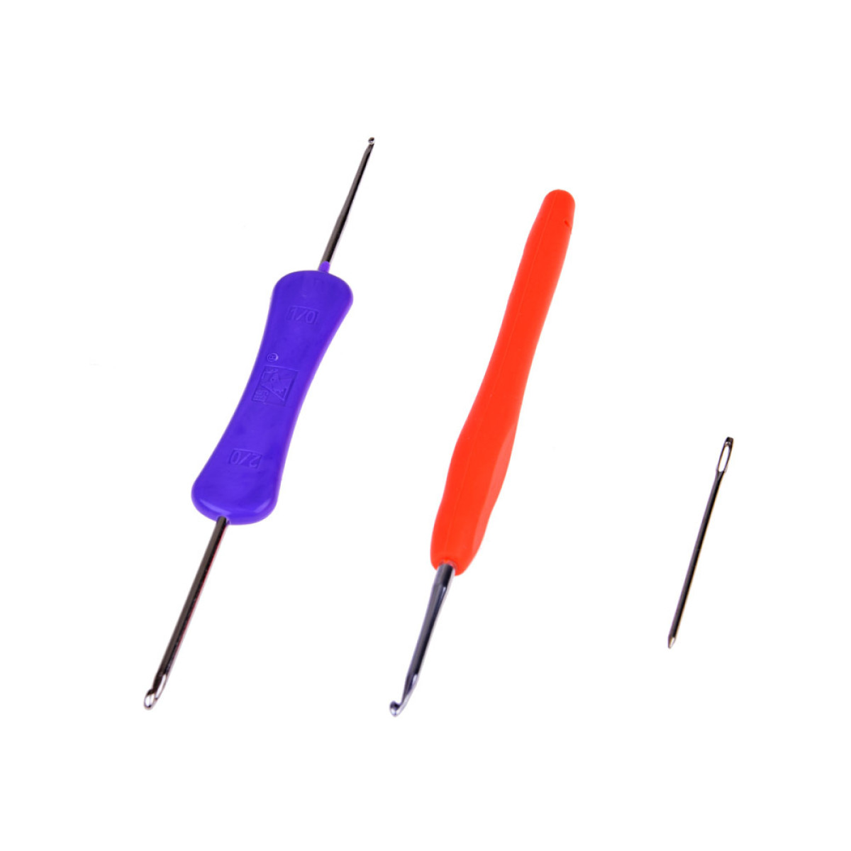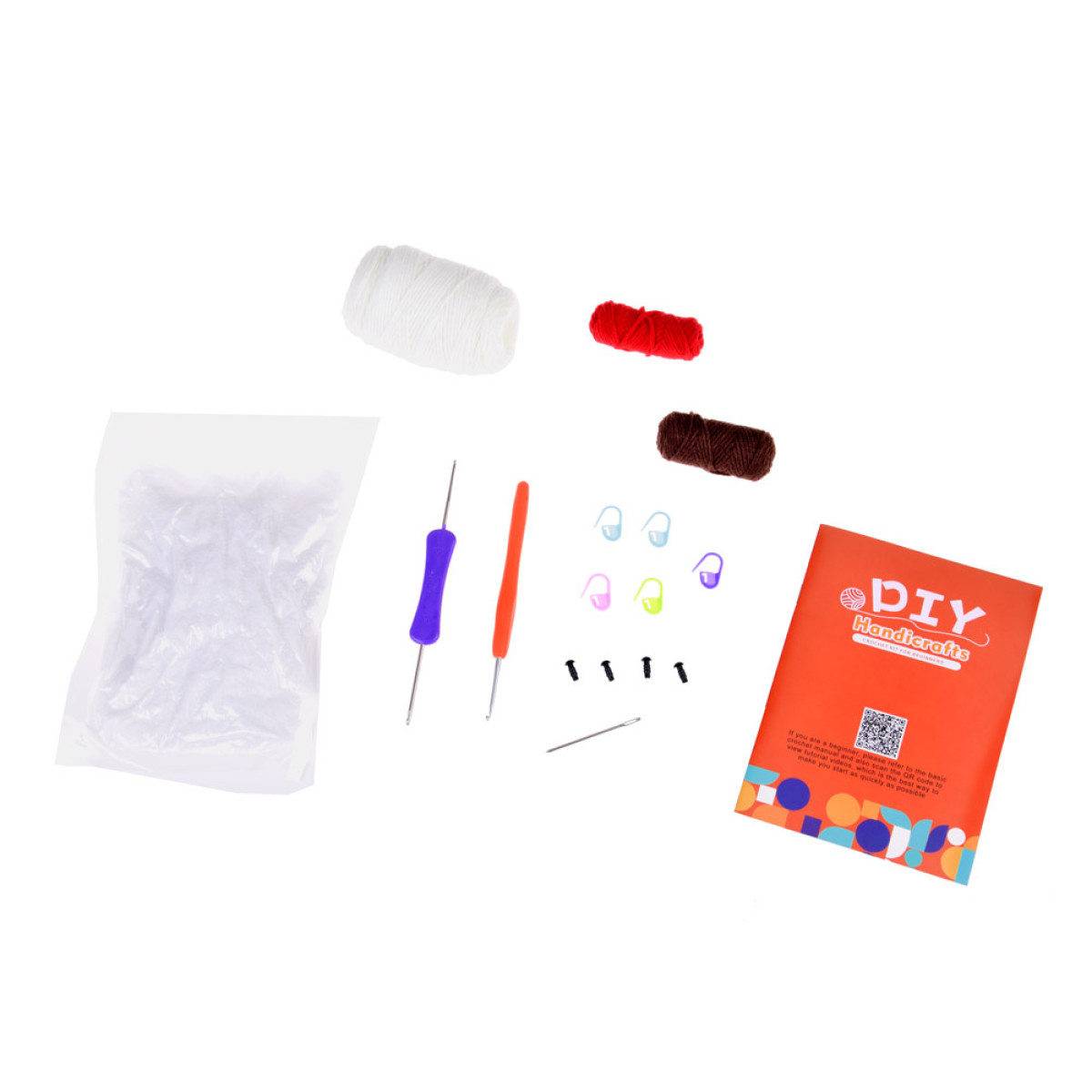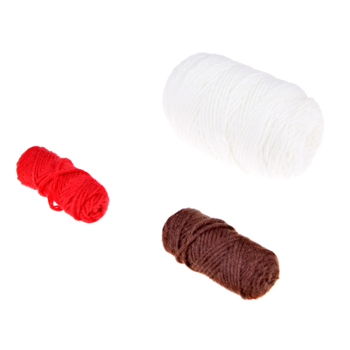 - 3 kokvilnas dzijas kamoli dažādās krāsās: ekru, brūnā un sarkanā;