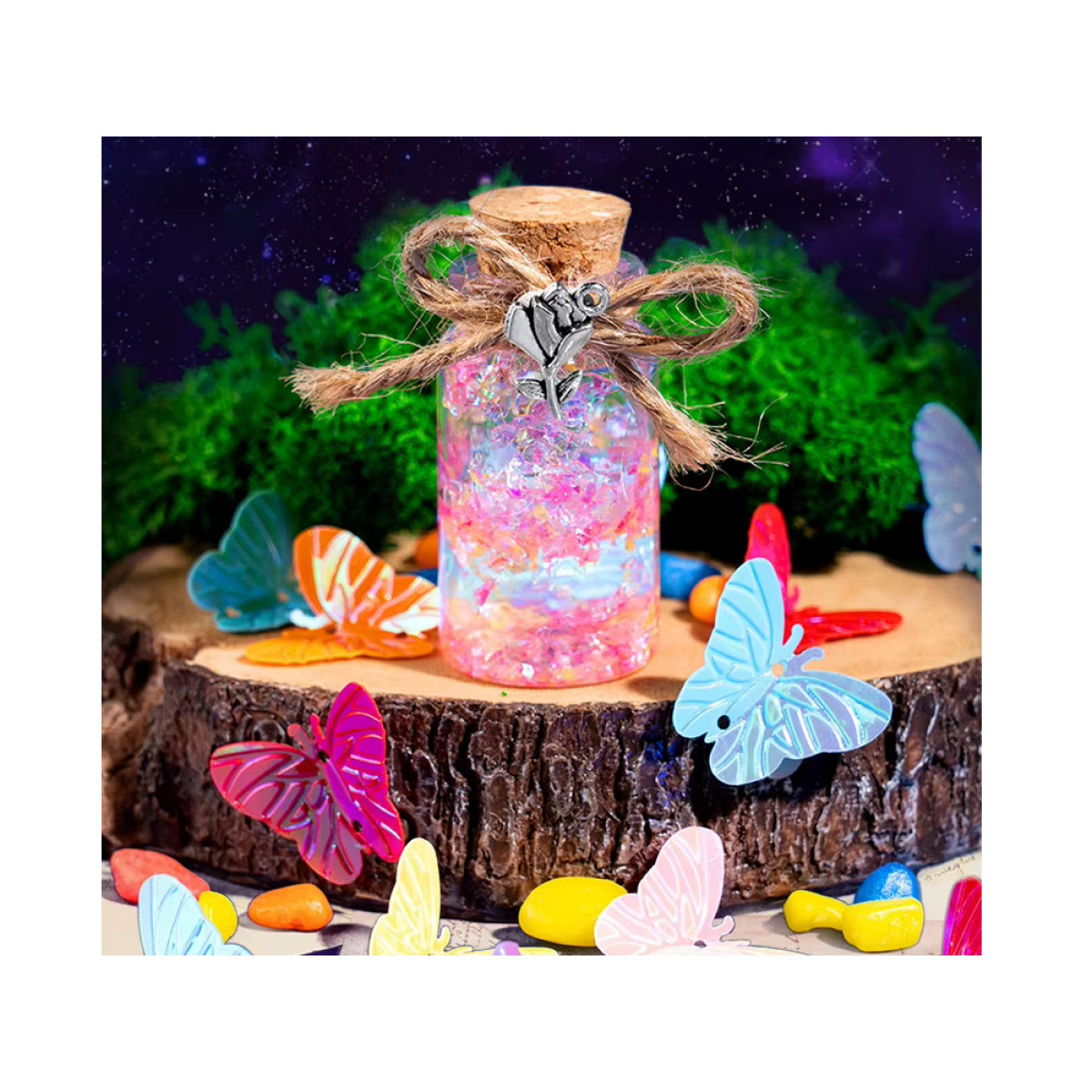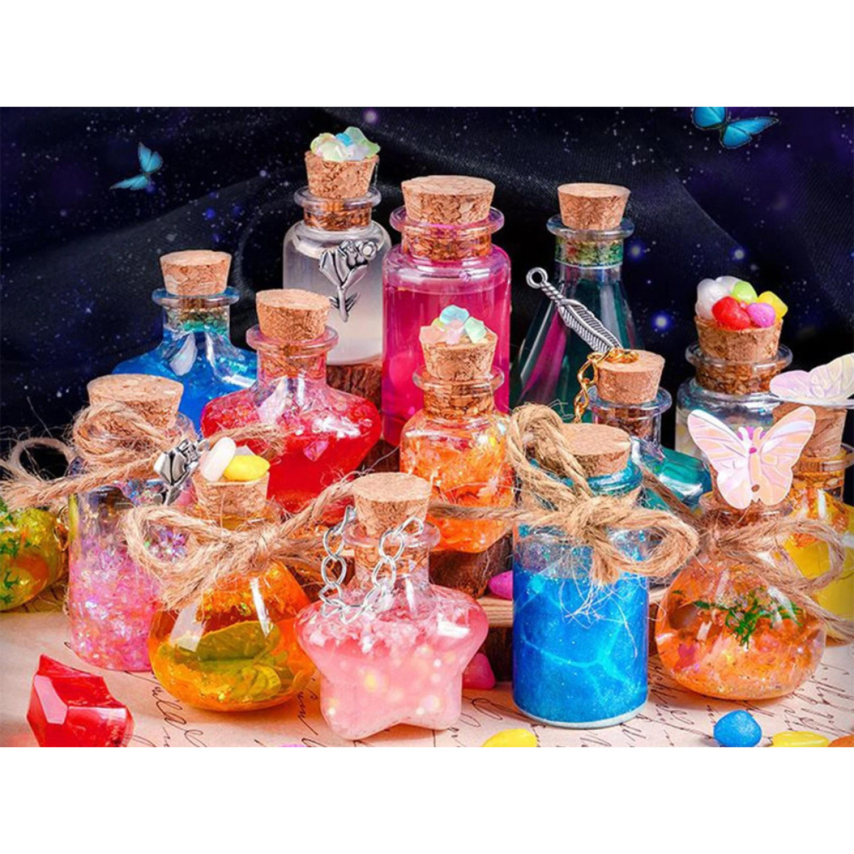 Atceroties bērnību, kad sajaucām dubļus, lapas, zariņus un akmentiņus, šis komplekts ļauj atgriezties pie šīm brīnišķīgajām atmiņām. Tagad, pievienojot spīdumus un krāsainus kristālus, varat radīt burvīgus eliksīrus mazās pudelītēs. Izcilas priekšrocības:
