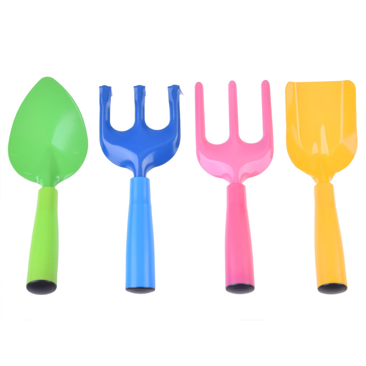 Komplektā ir praktiski rīki, kas pielāgoti mazām rokām, bet izskatās kā "pieaugušo" rīki. Katram ir izturīgs metāla gals un plastmasas rokturis košās krāsās – dzeltenā, zilā, zaļā un rozā. Rīki ir apmēram 20 cm gari un 8 cm plati, padarot tos ērtus un viegli lietojamus. Tie ir lieliski piemēroti rakšanai, grābšanai, pārstādīšanai un zemes uzirdināšanai.