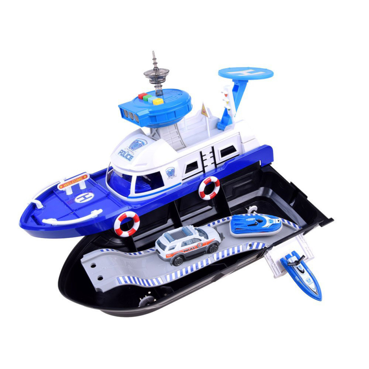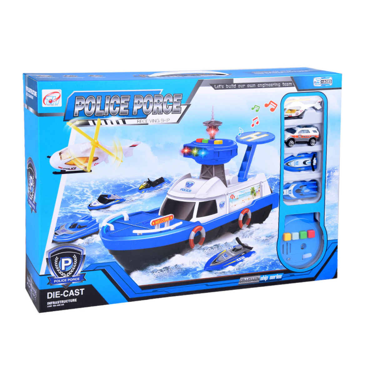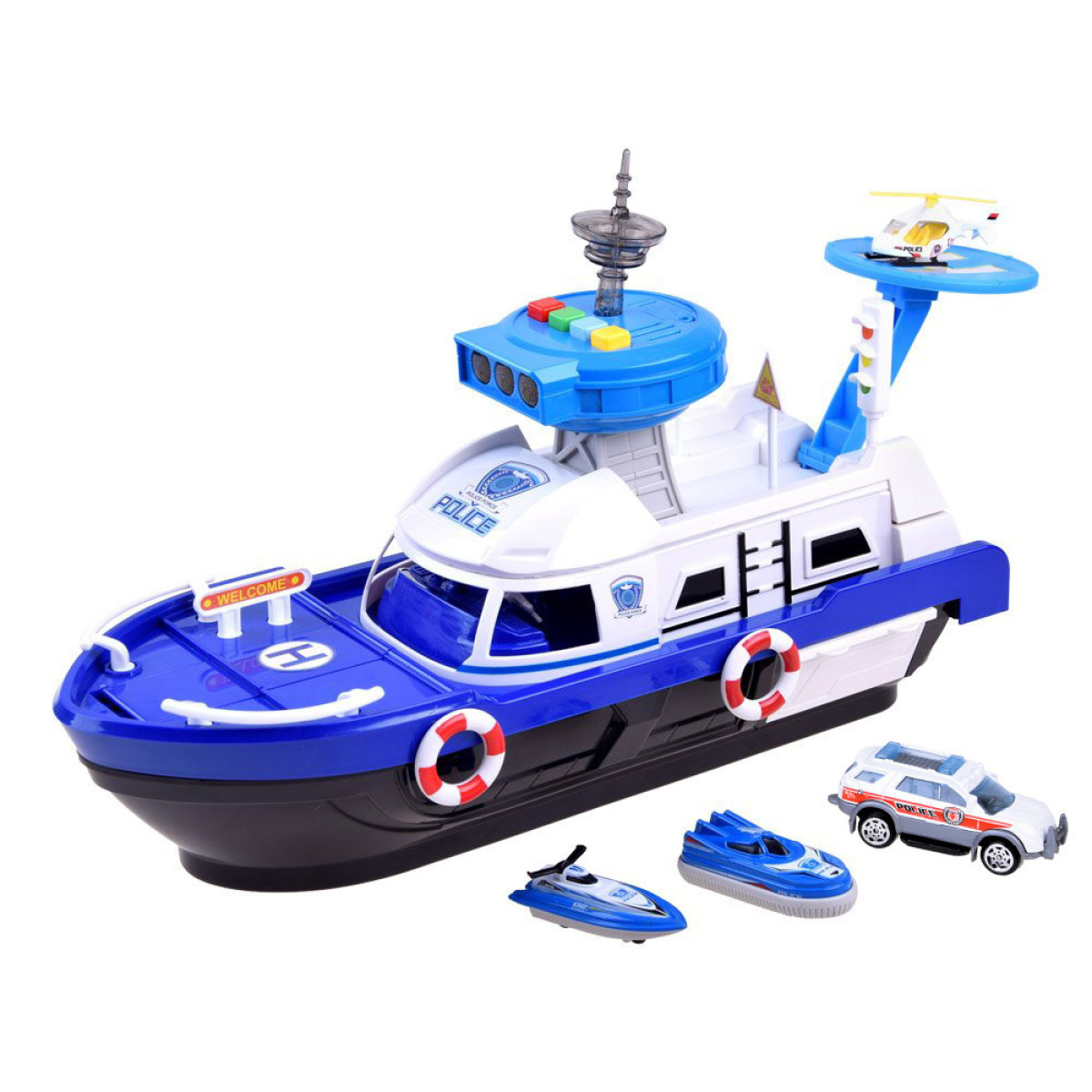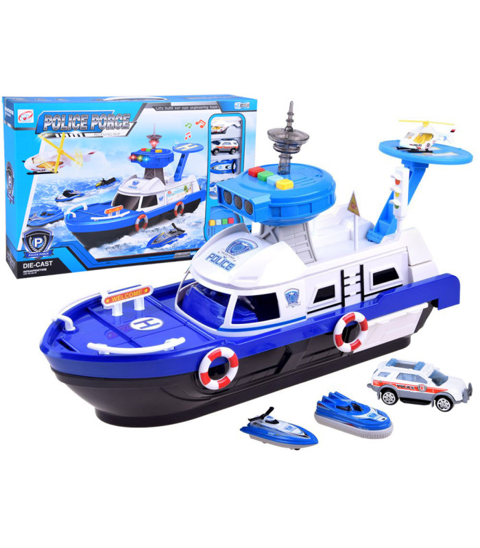 Profesionāls Policijas komplekts, kas paredzēts likuma ievērošanai uz ūdens. Katrs mazs policists labi zina, ka viņa pienākums ir rūpēties par likuma ievērošanu un sniegt palīdzību uz sauszemes, ūdenī un gaisā.