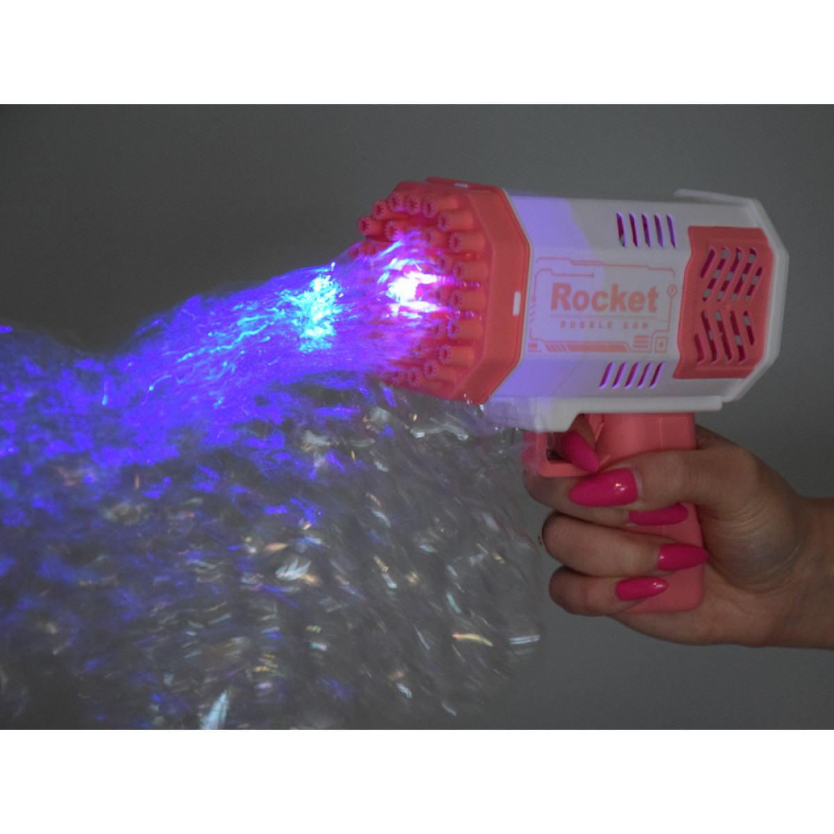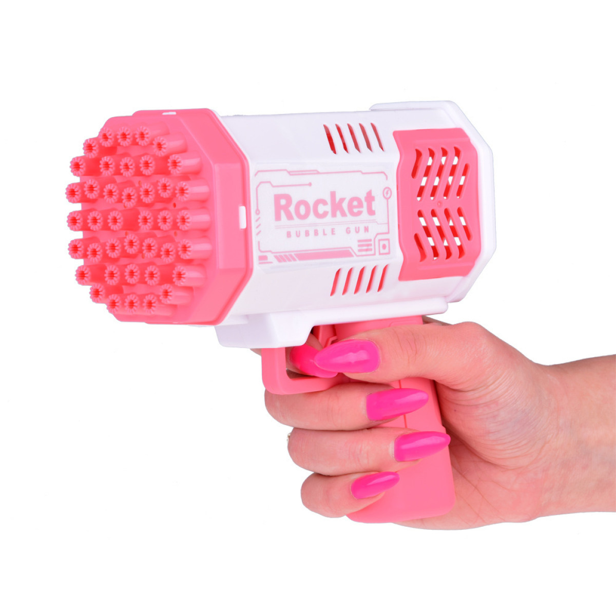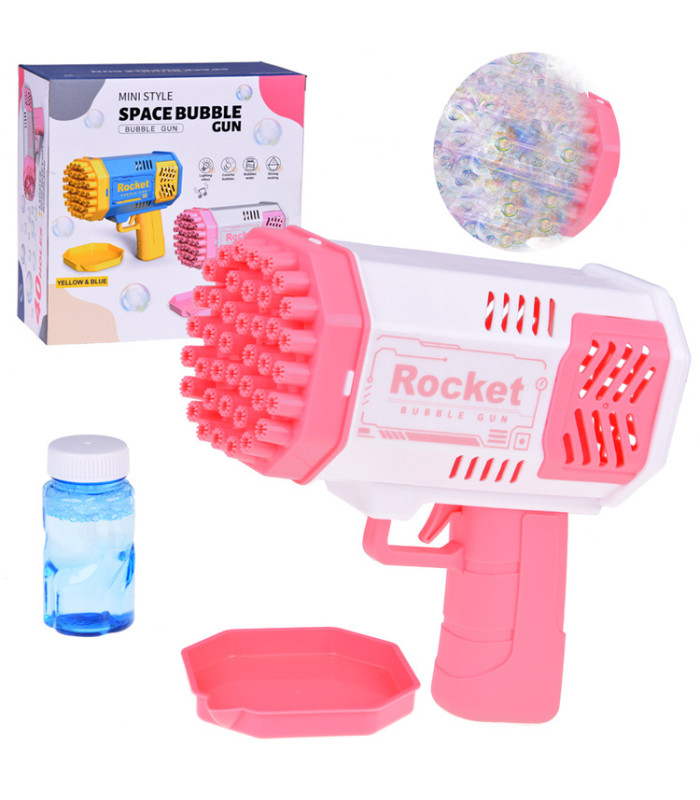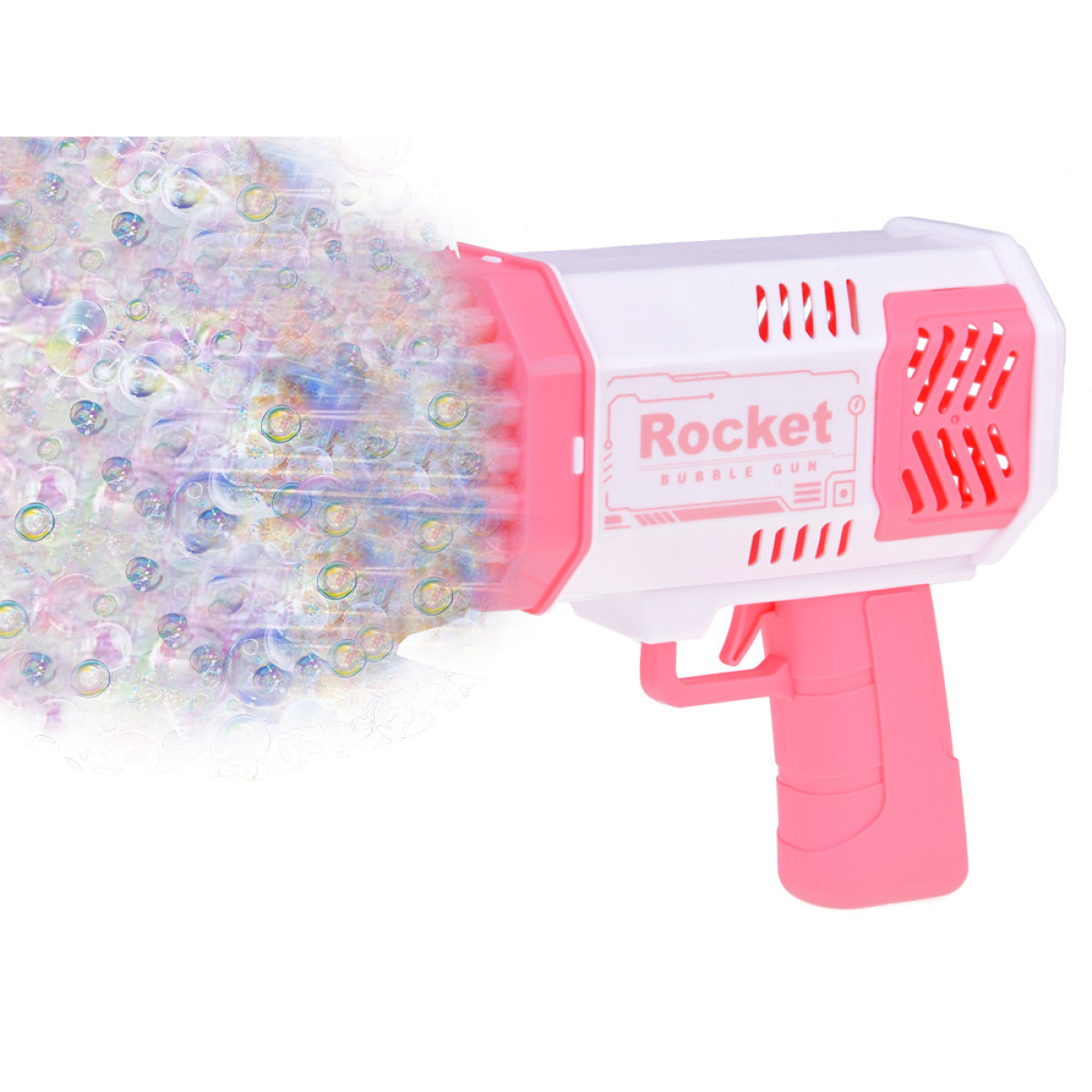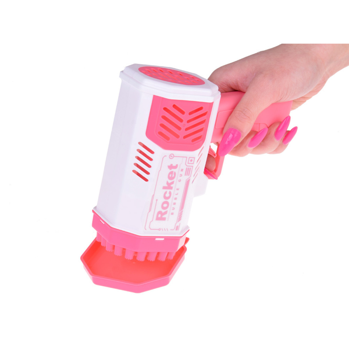 Pastelīgi rozā ziepjūdeņu pistole ir burvīga rotaļlieta, kas spēj vienlaikus izlaist līdz pat 40 krāsainām, mirdzošām ziepjūdeņiem! Tas sniedz daudz prieka ne tikai mazam bērnam, bet arī ikvienam, kas vēro šo parādību.