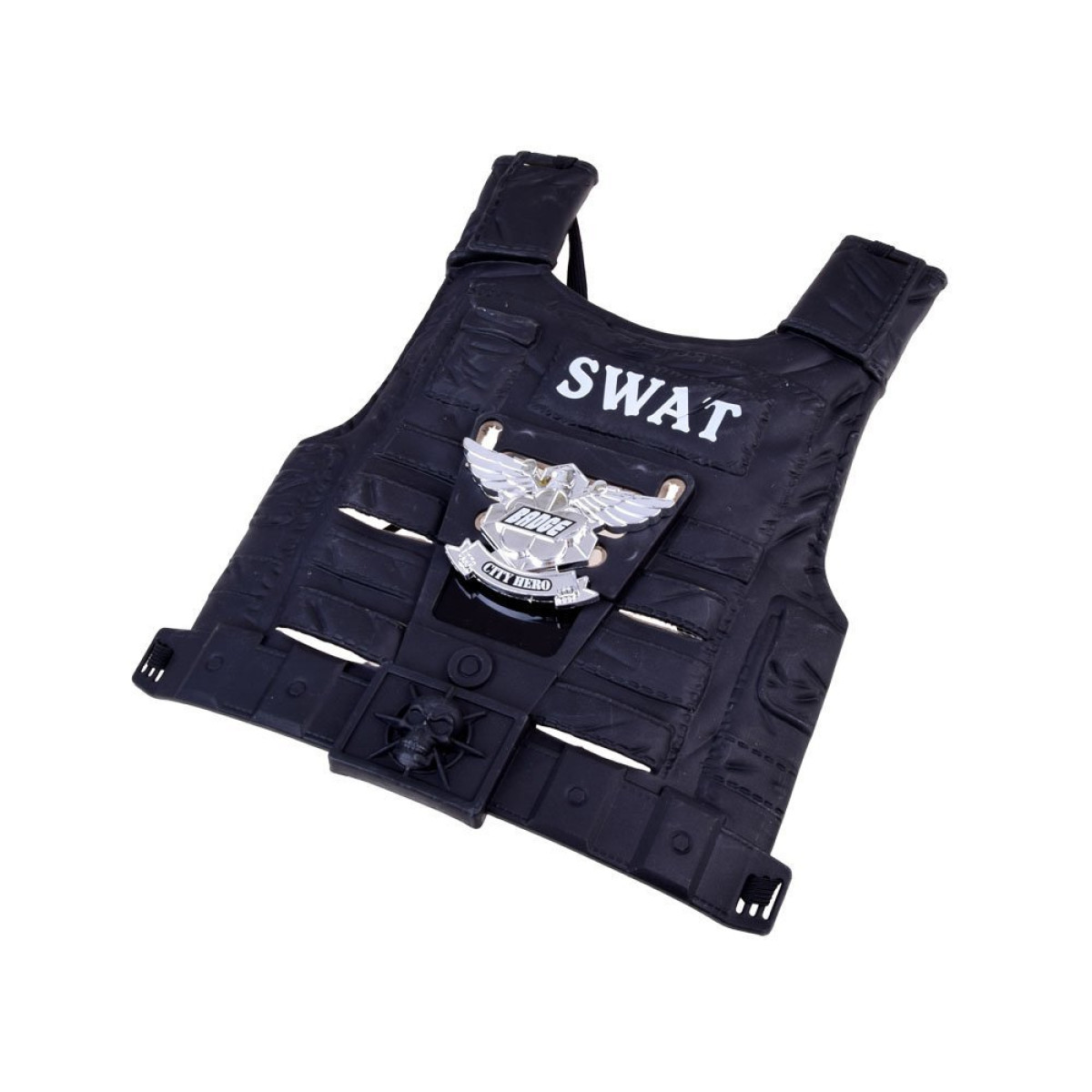 Tumši zils komplekts ar vesti, ieročiem un aizsargmasku būs noderīgs daudzās spēlēs par likuma sargu.