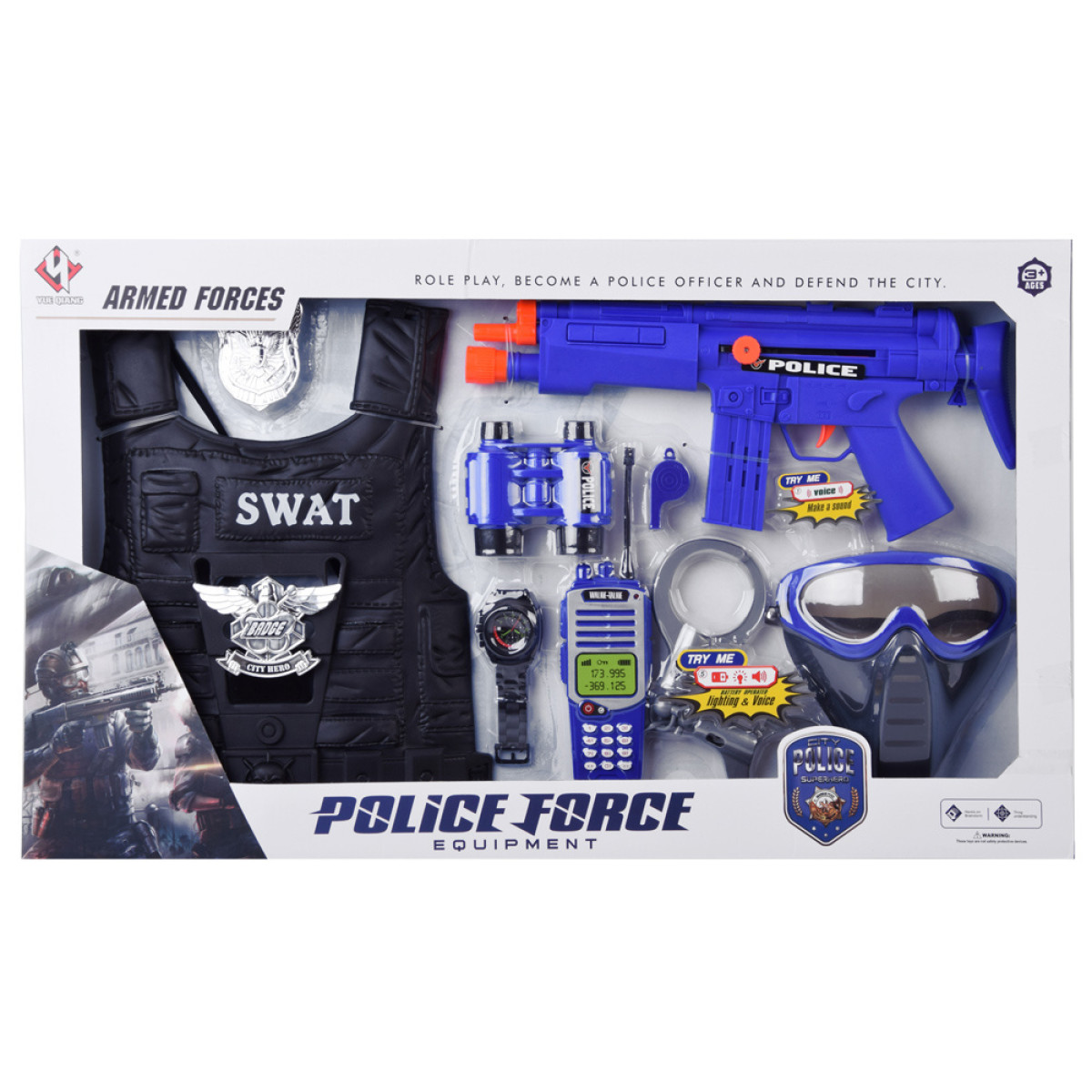 Policijas komplekts ir plastmasas komplekts zēniem, kuri vēlas iejusties policijas lomā un apmierināt katra jaunā policista cerības.