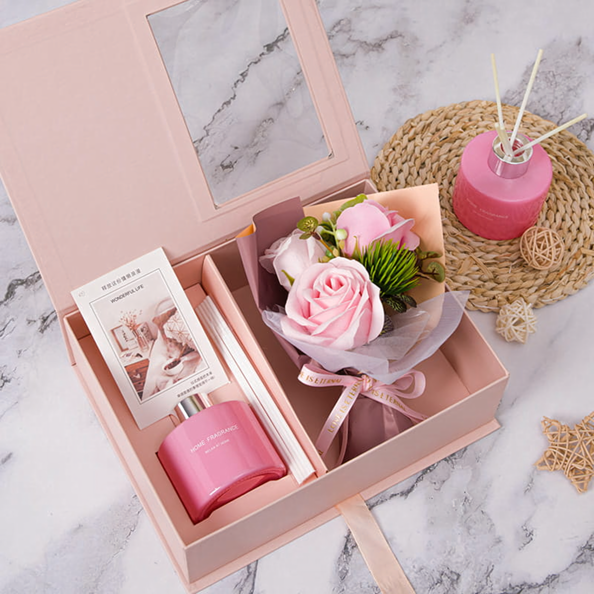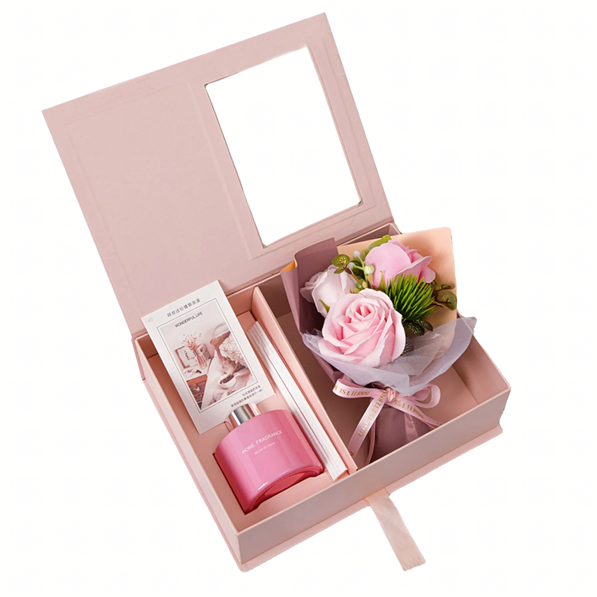 Dāvanu komplekts ar rozā difuzoru un ziepju rozēm