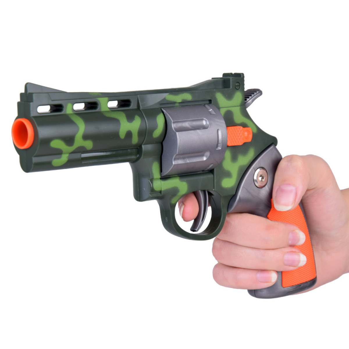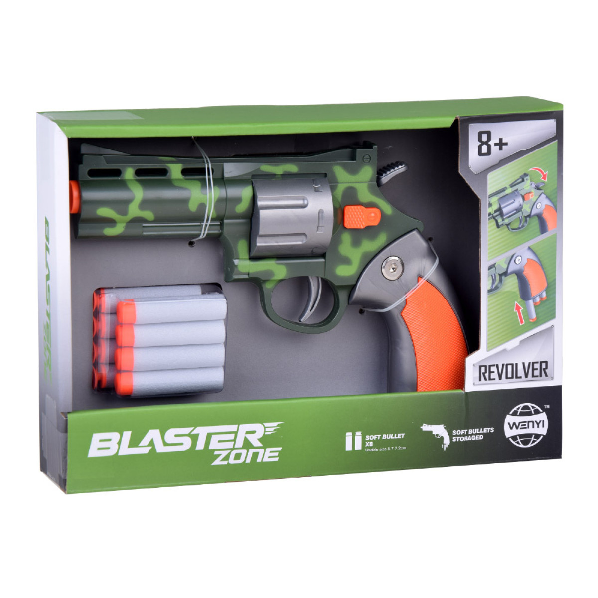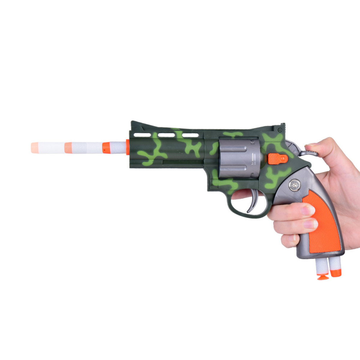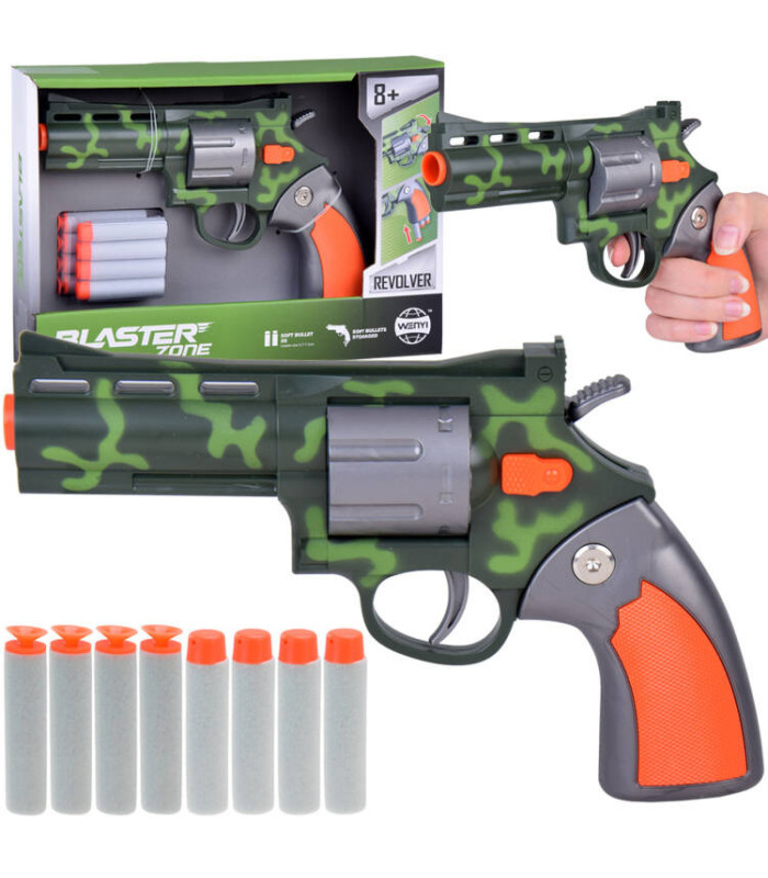 Revolvers ir ērts un viegli turams vienā rokā. Amunīcija ir izgatavota no putām un mīkstas gumijas, kas padara to ļoti drošu un vieglu. Komplektā ir 6 lodes.