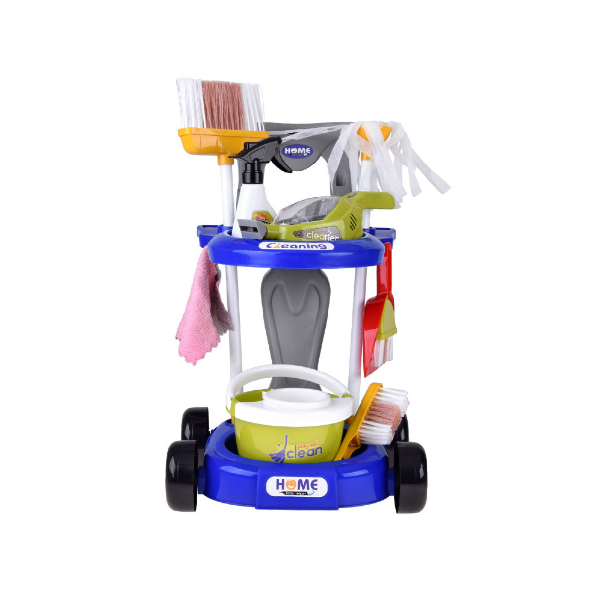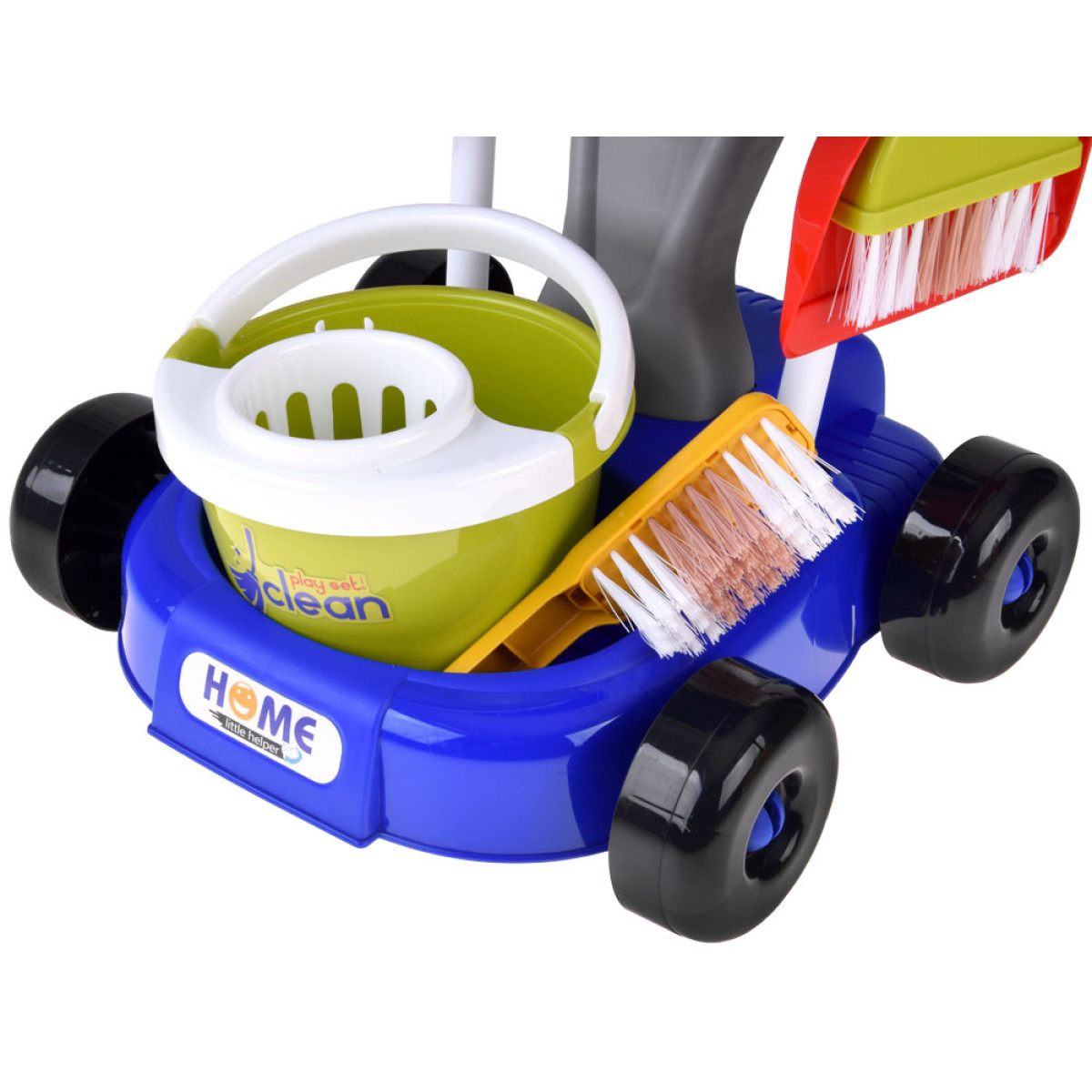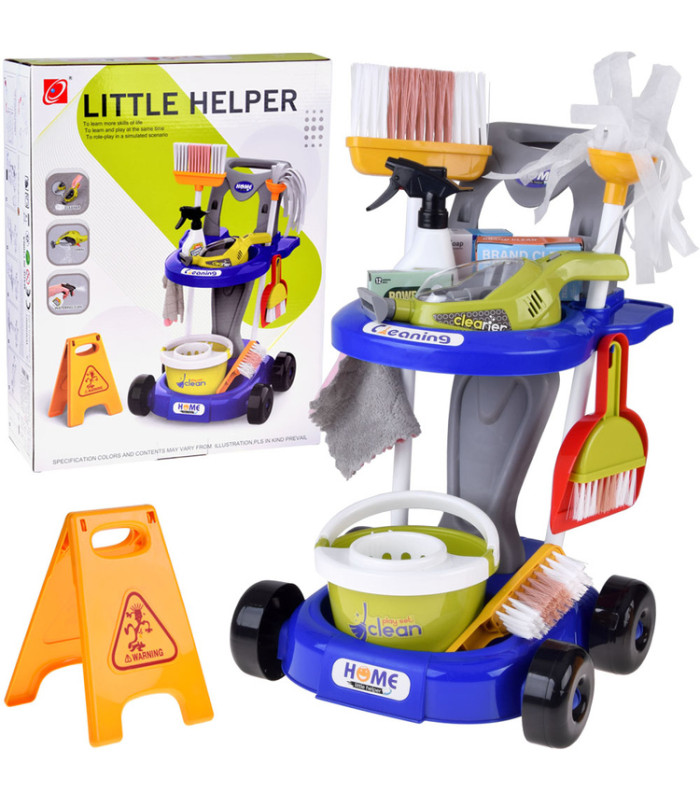 Ideāls komplekts bērniem, kuriem patīk atdarināt pieaugušos un spēlēties lomu spēles. Ratiņi ar piederumiem ļauj ērti sakārtot visus elementus un viegli tos pārnēsāt. Komplektā ir dažādi miniatūrie piederumi, kas ikdienā vecākiem ir nepieciešami mājsaimniecības darbiem, bet bērnam sniegs jautrību un ļaus saprast, cik svarīgi ir uzturēt tīrību apkārt.