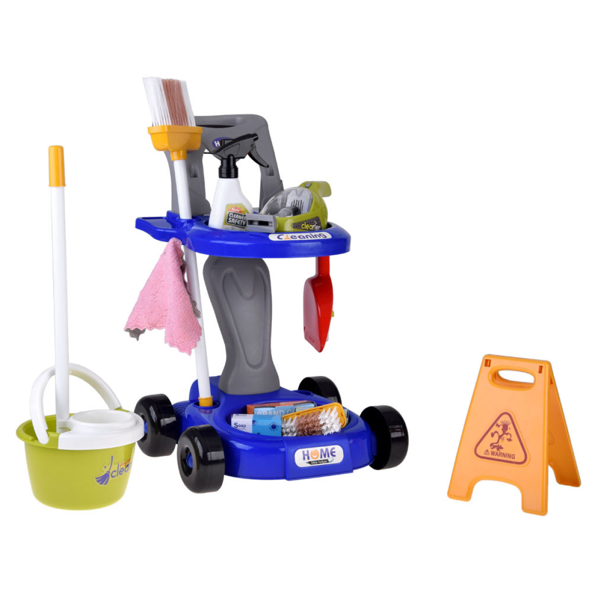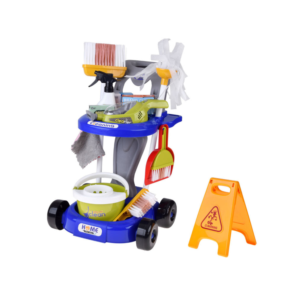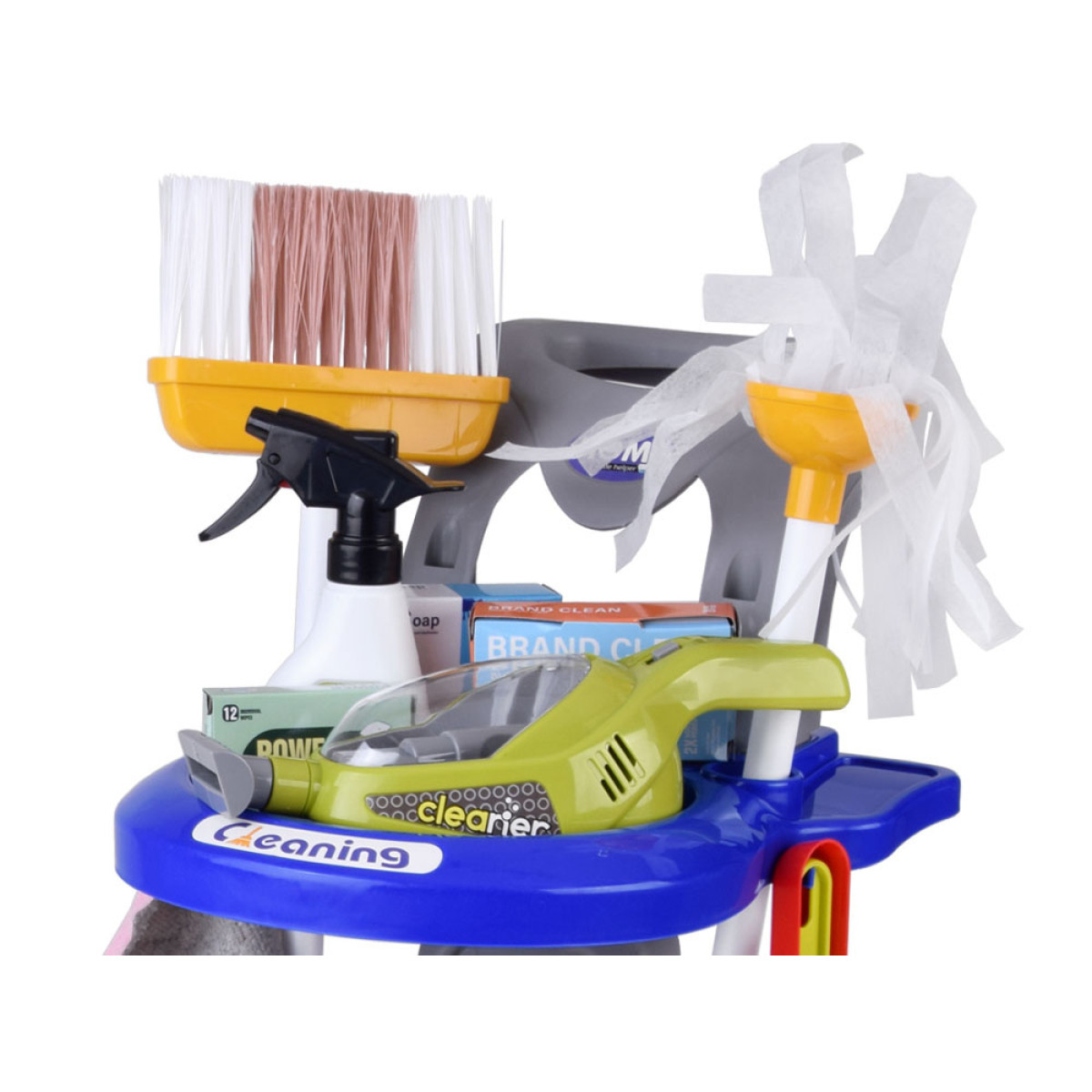 Ideāls komplekts bērniem, kuriem patīk atdarināt pieaugušos un spēlēties lomu spēles. Ratiņi ar piederumiem ļauj ērti sakārtot visus elementus un viegli tos pārnēsāt. Komplektā ir dažādi miniatūrie piederumi, kas ikdienā vecākiem ir nepieciešami mājsaimniecības darbiem, bet bērnam sniegs jautrību un ļaus saprast, cik svarīgi ir uzturēt tīrību apkārt.