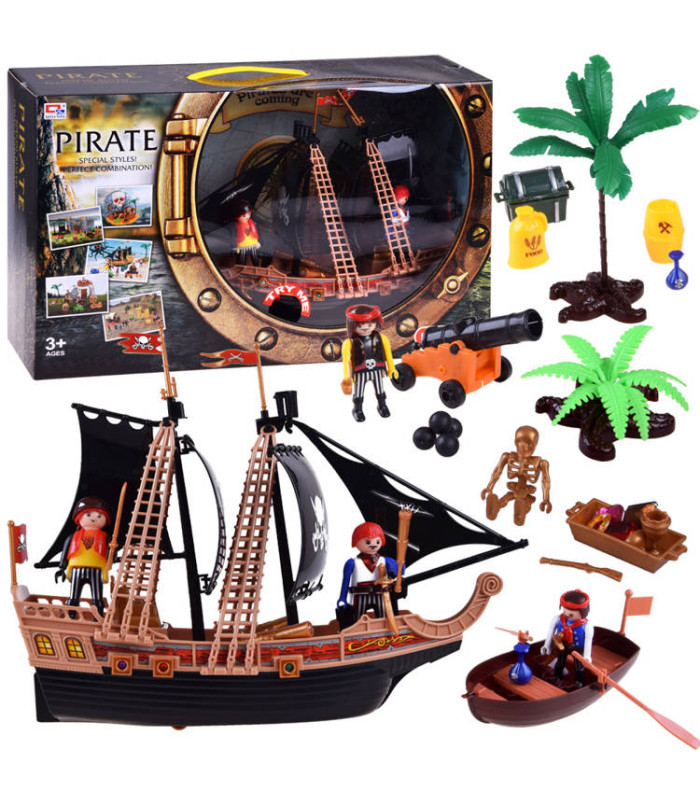 Daudzdaļīgs komplekts noteikti patiks katram pirātu stāstu cienītājam. Šeit atradīsiet visu nepieciešamo, lai izdomātu un atveidotu neticamus piedzīvojumus. Drosmīgi karavīri var vajāt pirātu bandu vai bezbailīgi korsāri dosies meklēt pazudušos dārgumus - ir daudz ideju spēlēm.