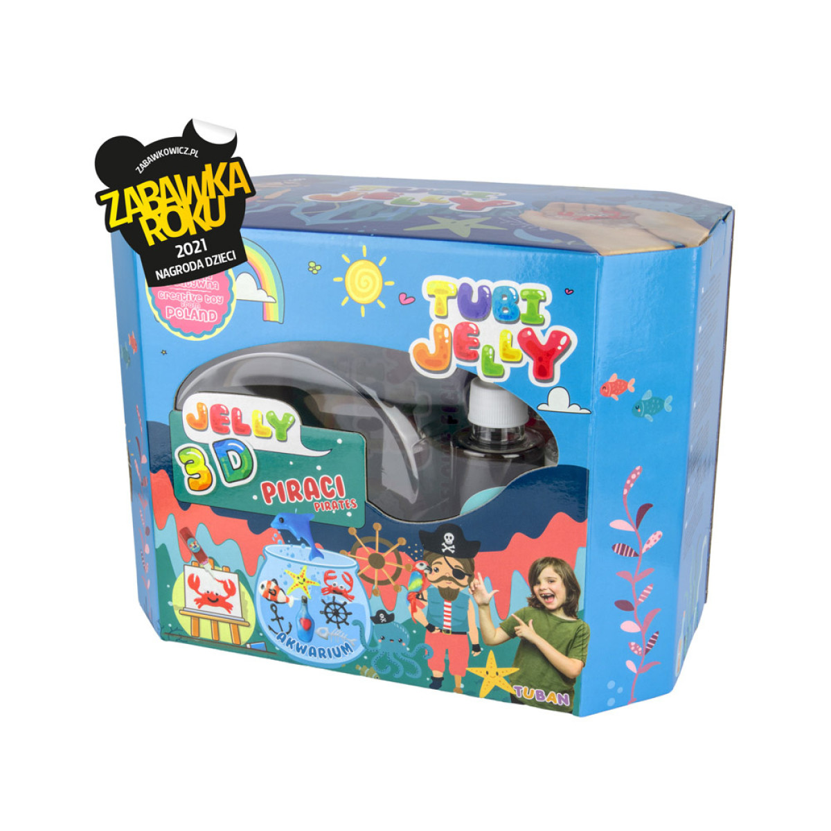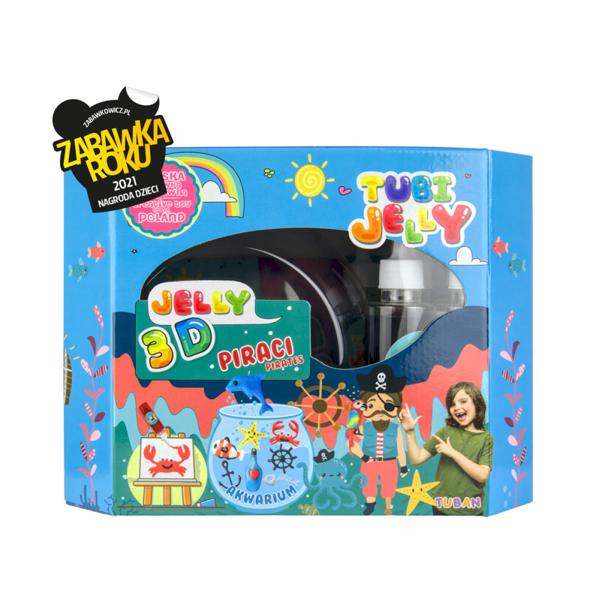 ir jaunākais Tuban uzņēmuma piedāvājums, kas ļauj izveidot krāsainu, lielu akvāriju ar jūras tematiku. Komplekts satur plastisko masu, kas apvienojumā ar atbilstošu aktivatoru ļauj izveidot trīsdimensiju 3D figūras ar želejas konsistenci. Katrs komplekts ar lielo akvāriju satur želejas astoņās dažādās krāsās: zilā, baltā, sarkanā, neona, brūnā, tirkīza, melnā un spīdīgā.Piedzīvojiet sevi kā jauns ķīmiķis un vērojiet, kā želeja pārvēršas par figūru!
