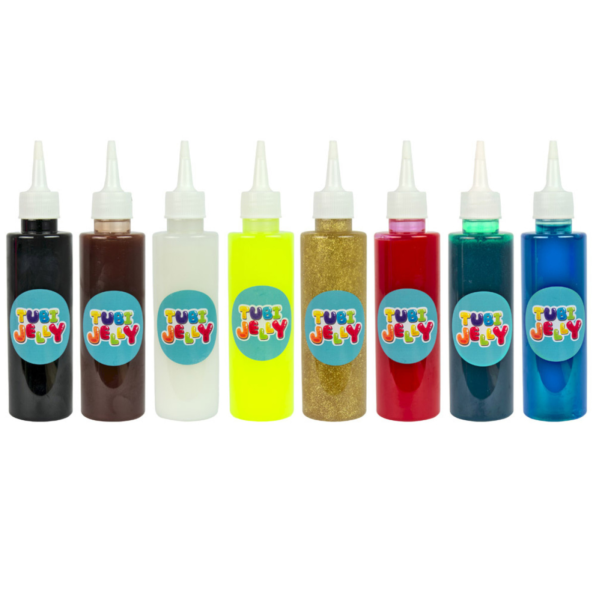 - 8 želejas šķidrumus ar tilpumu 150 ml, krāsās: zilā, baltā, sarkanā, neona, brūnā, tirkīza, melnā un spīdīgā