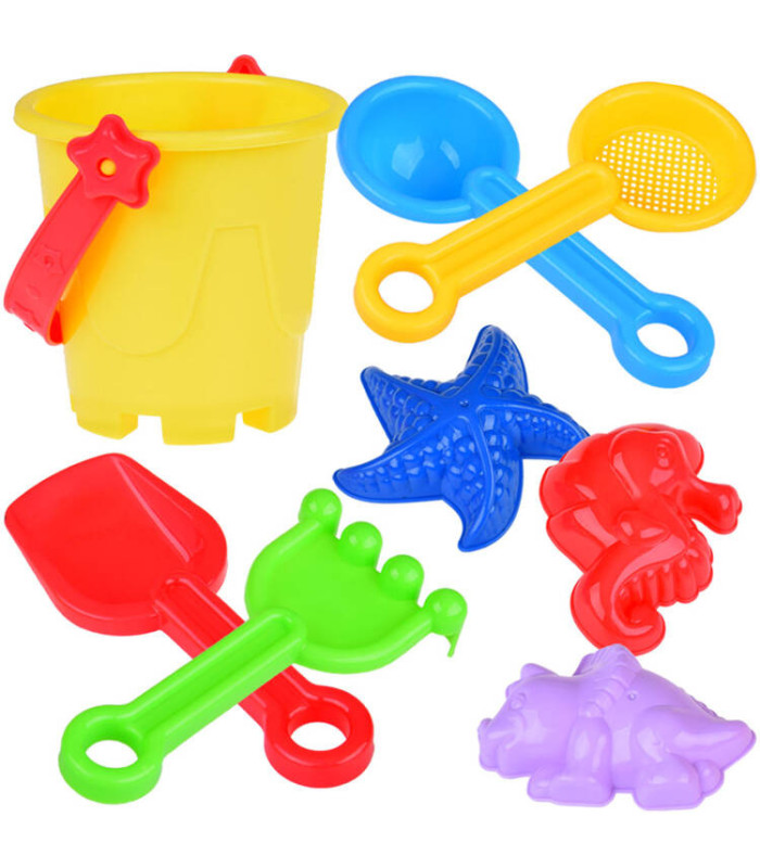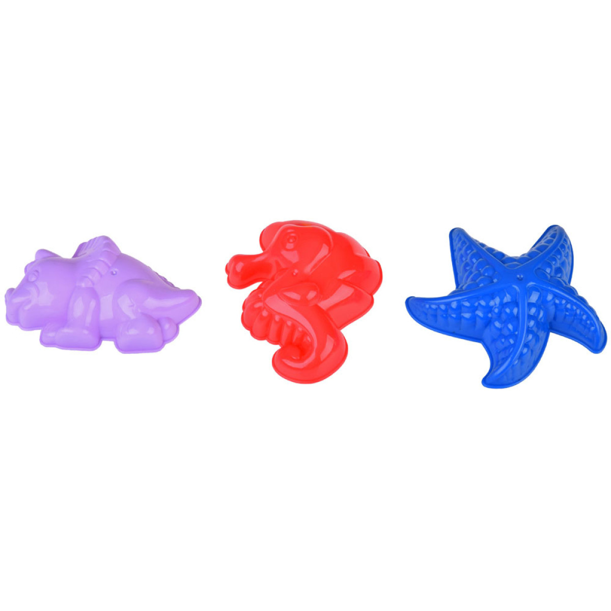 Komplektā ir arī trīs formas, kuru veidols patiks katram atklājējam! Tās ietver dinozauru, jūras zirdziņu un jūras zvaigzni. Bet tas vēl nav viss! Spainis, piepildīts ar smiltīm un apgriezts, veido iespaidīgu torni! Saliekot vairākus kopā, var izveidot lielu pili.