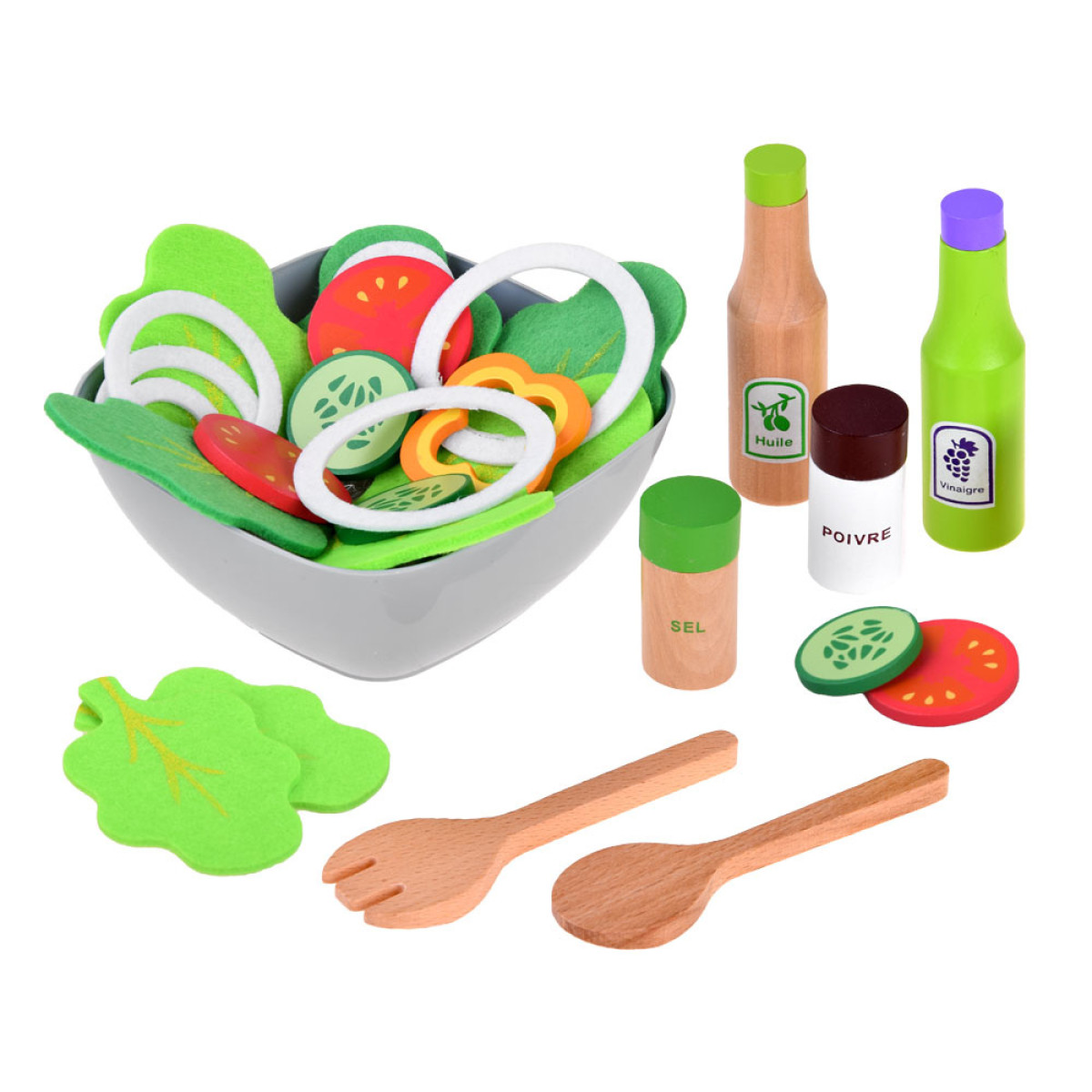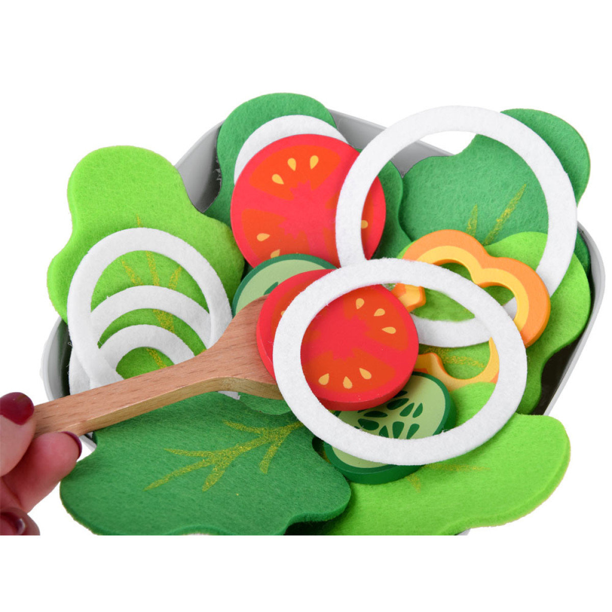 Salātu izgatavošanas komplekts - Zaļo salātu trauks un koka dārzeņi